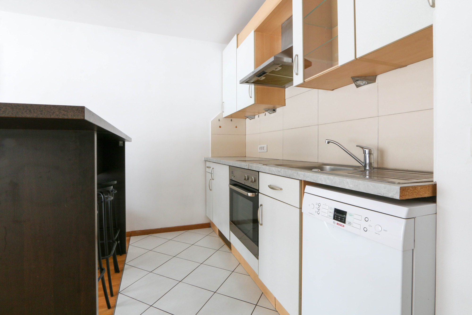 The attractive apartment has a spacious living/dining room with a functional kitchen, a spacious bedroom, a bathroom, a cellar compartment and an associated garage parking space.
