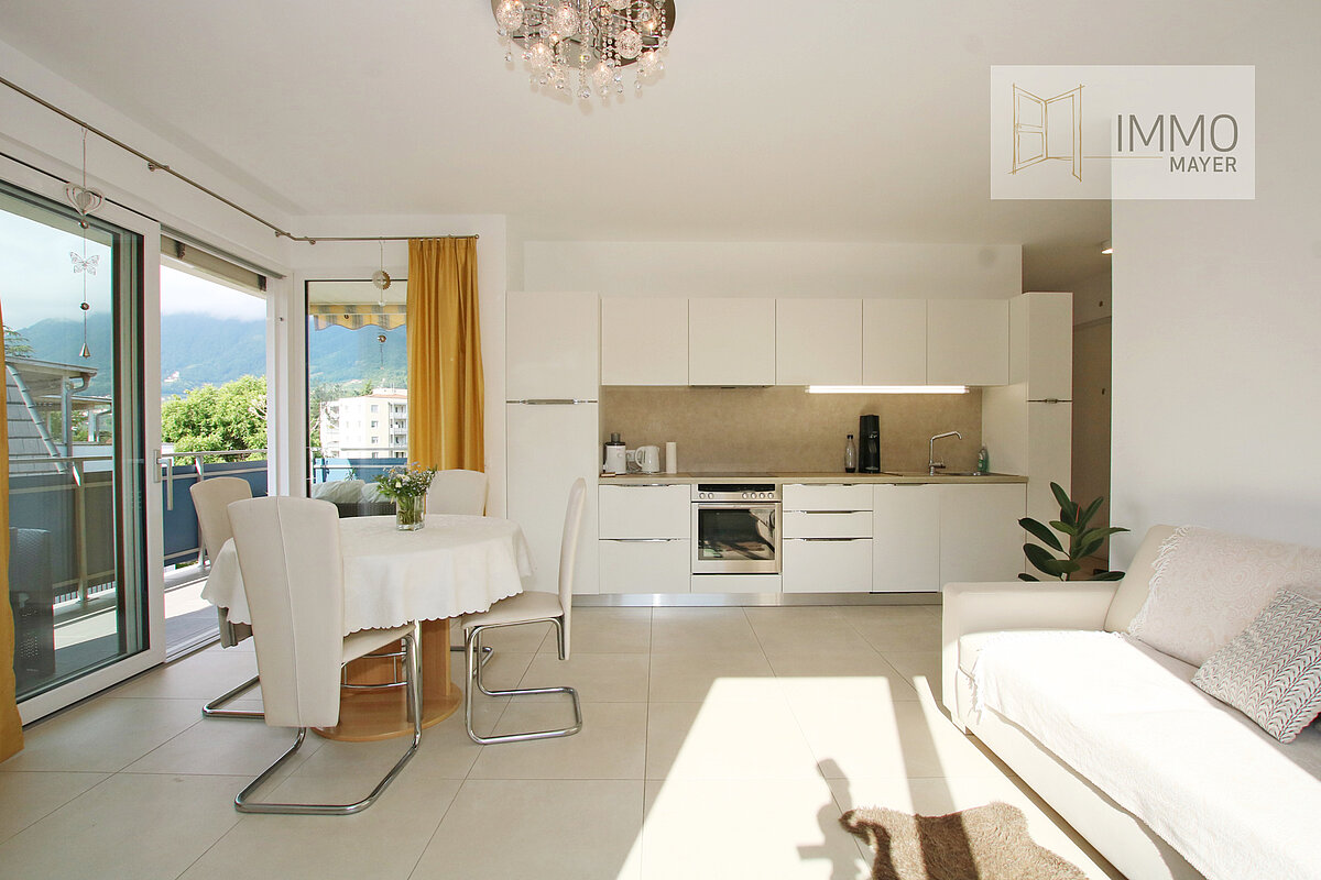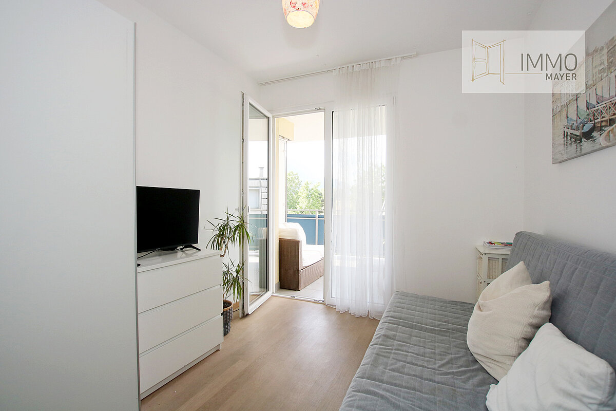 This penthouse apartment impresses upon entering with its brightness and open spatial feel. Large window fronts allow plenty of natural light to flow into the rooms throughout the day, creating a pleasant living atmosphere. A highlight is the sunny terrace with a south-facing orientation, which extends the living space outward - a cozy place to relax and enjoy a beautiful view of the surrounding mountains. The apartment is located in a quiet area and offers excellent access to all the important amenities of daily life as well as to the city center.