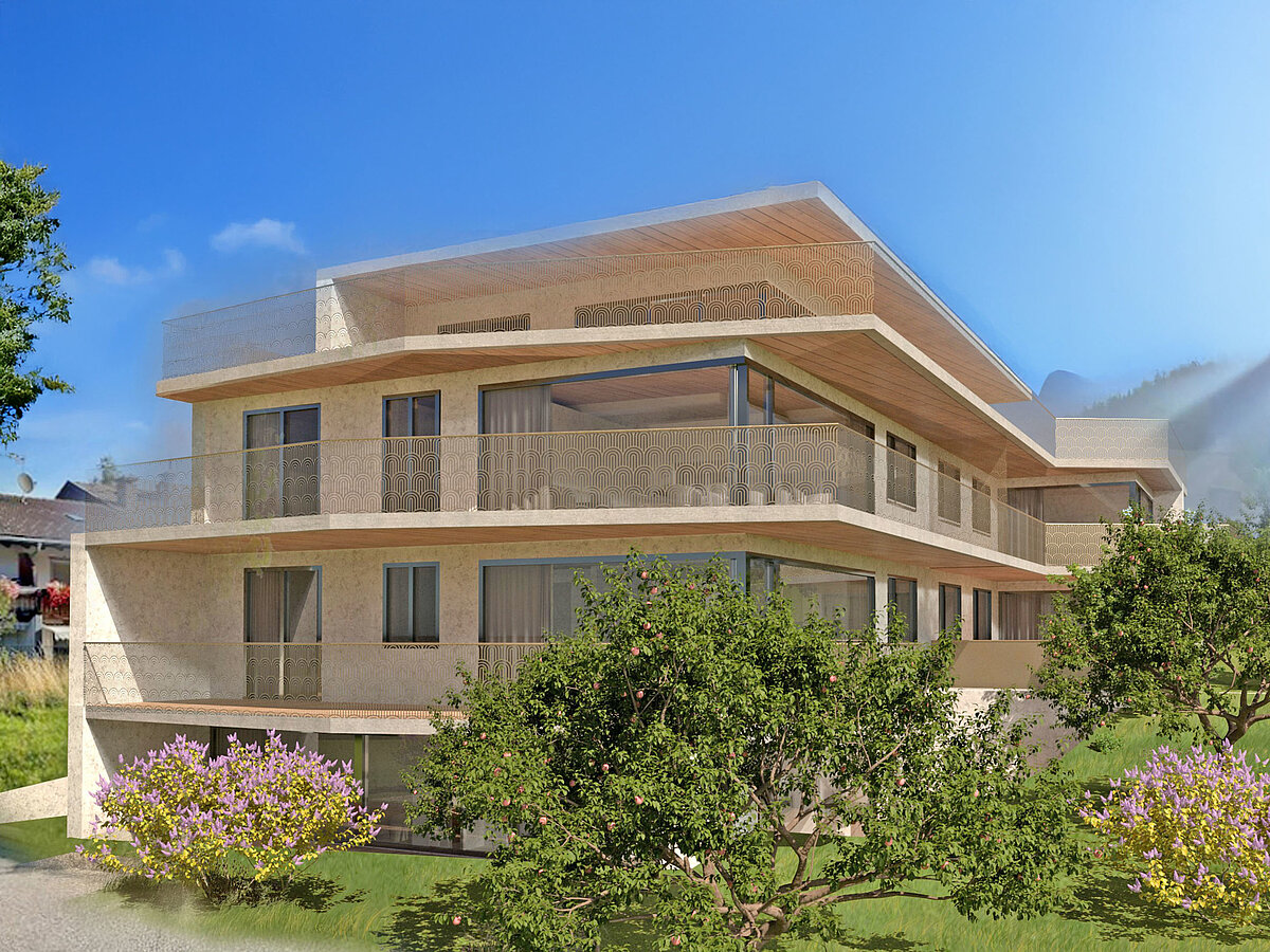 Beautiful three-room apartment in the new Villa Katharina building in Rasun di Sotto. This modern apartment on the lower first floor offers a terrace and a beautiful west-facing garden.