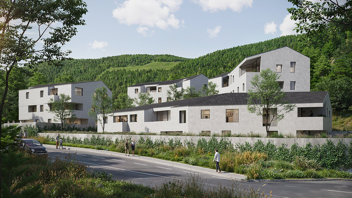 This spacious two-room apartment in the new construction project 'Gisse' in San Sigismondo offers modern living comfort and is being built according to the climate house standard A Nature.