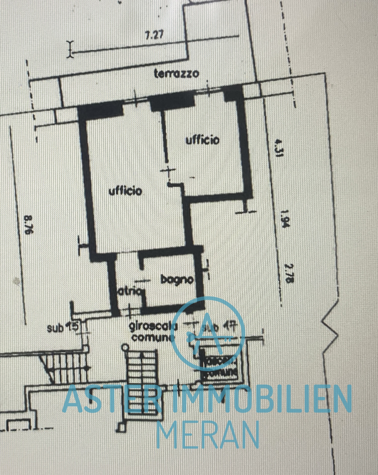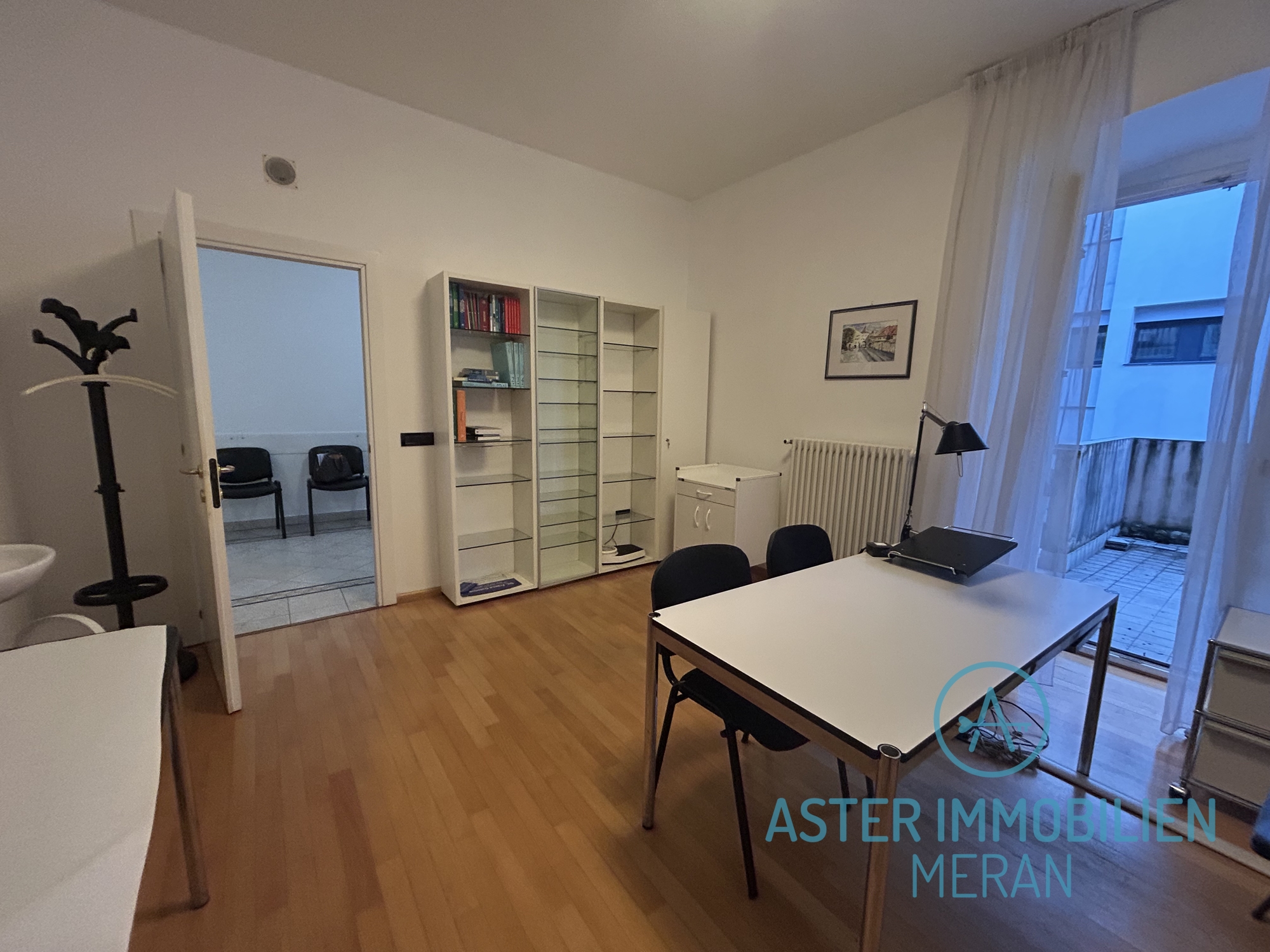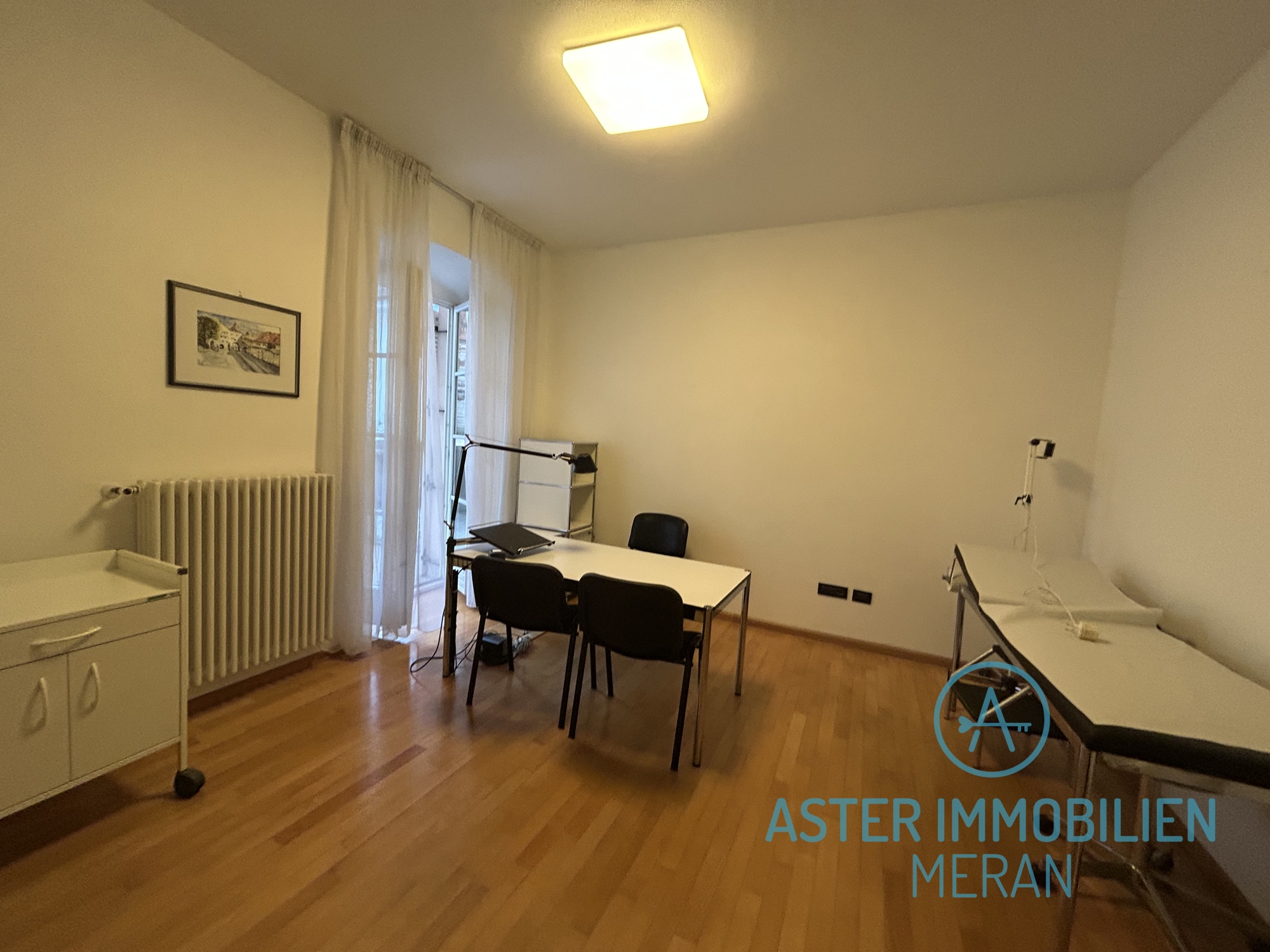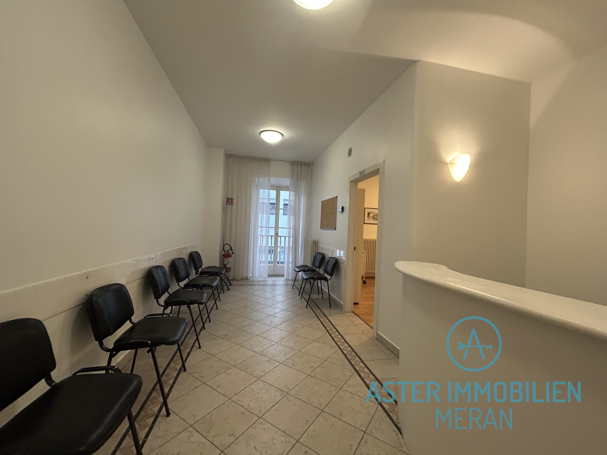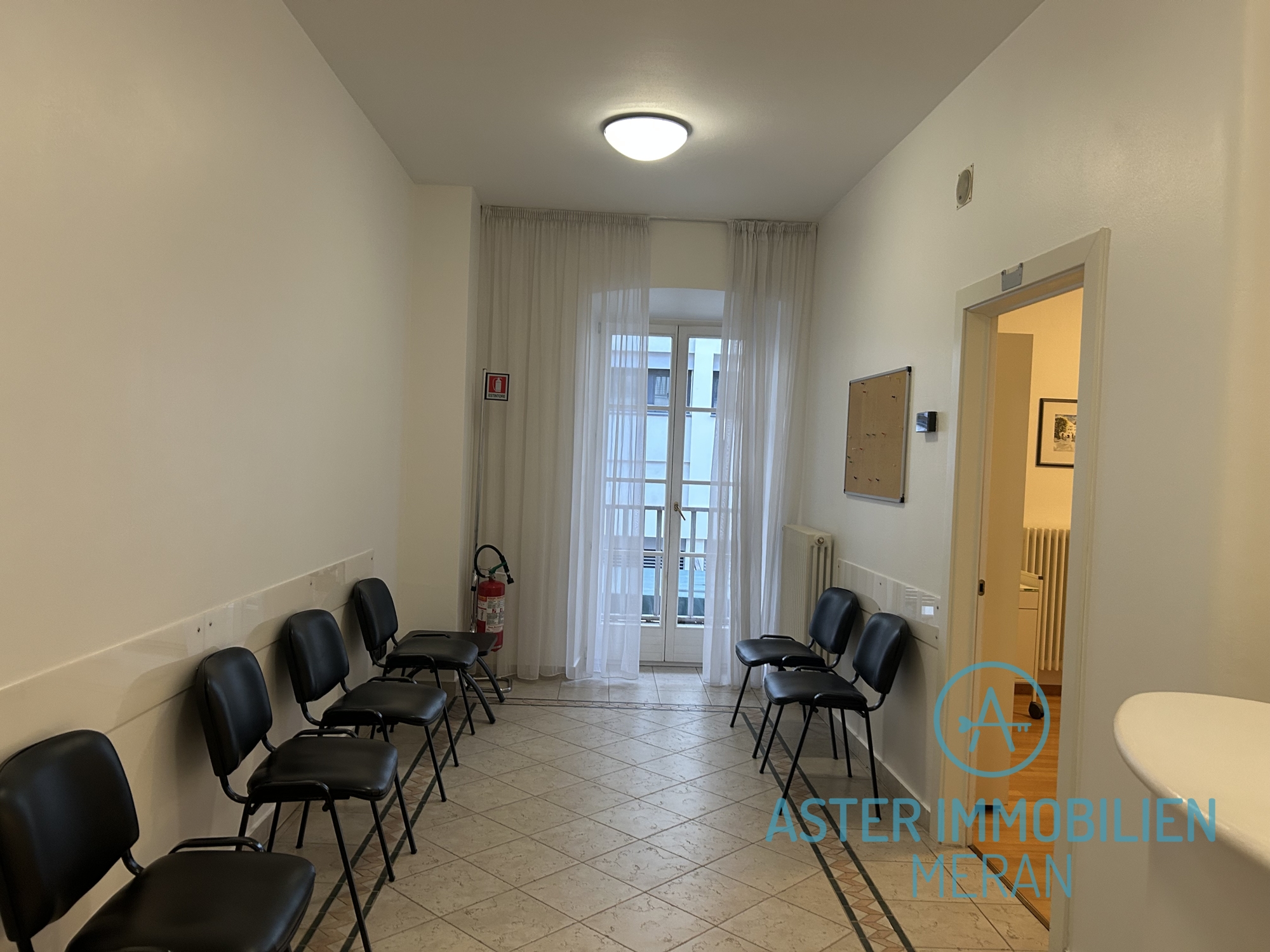Located in a privileged position in the heart of Merano, this office/practice presents itself as a perfect blend of the professional world and urban lifestyle. Surrounded by the vibrant atmosphere of the city center, it offers not only efficient working conditions but also the conveniences of urban life within immediate reach. The central location makes errands, breaks, and meetings easily accessible, while the charming surroundings contribute to an inspiring work atmosphere. Here, the advantages of a first-class location combine with a well-thought-out office concept to create an optimal working environment.