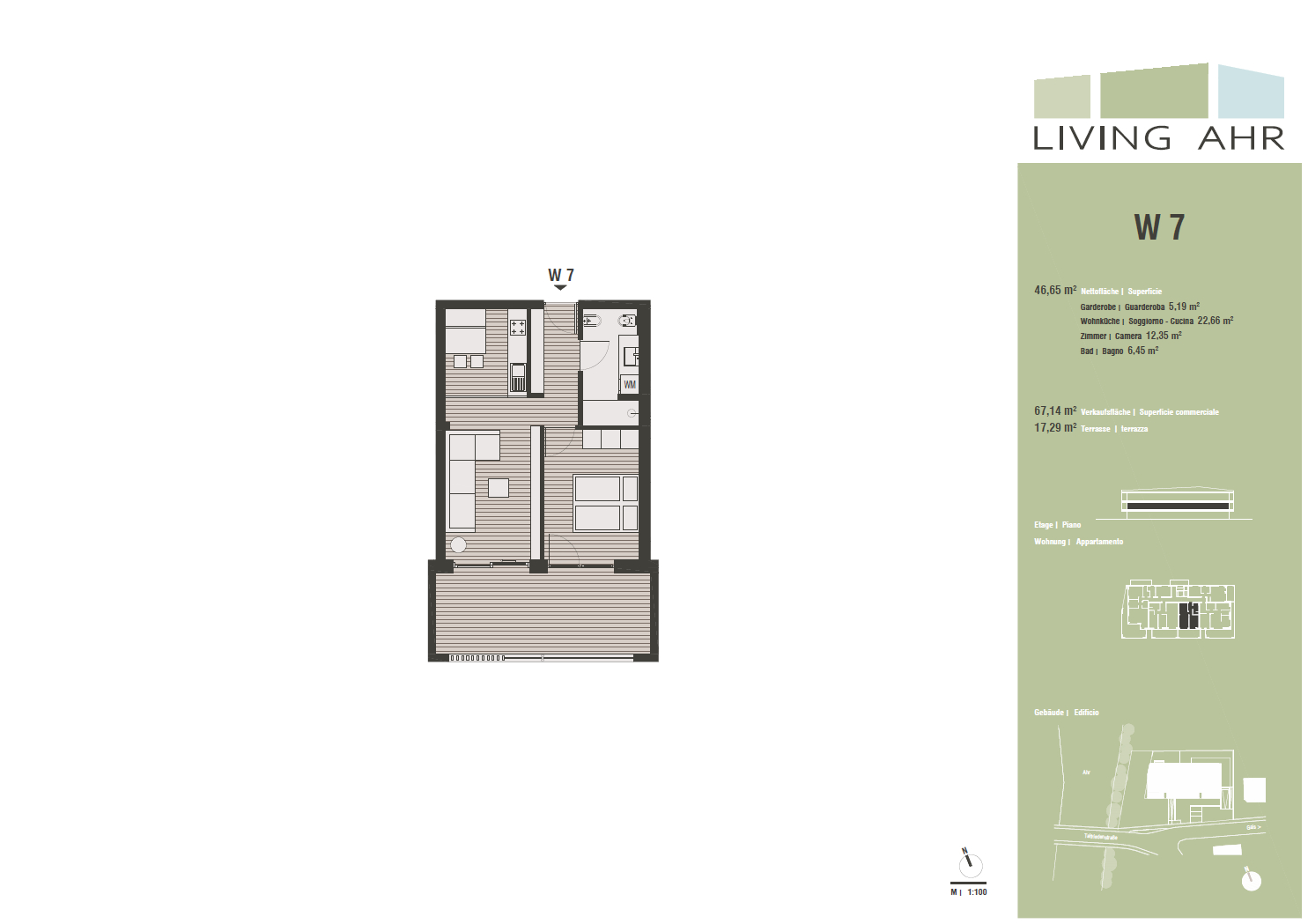 The beautifully laid out residential units promise a pleasant living atmosphere and are each equipped with a garden and/or terrace. Garage parking spaces can be purchased at an additional cost. The cellars are included in the price.