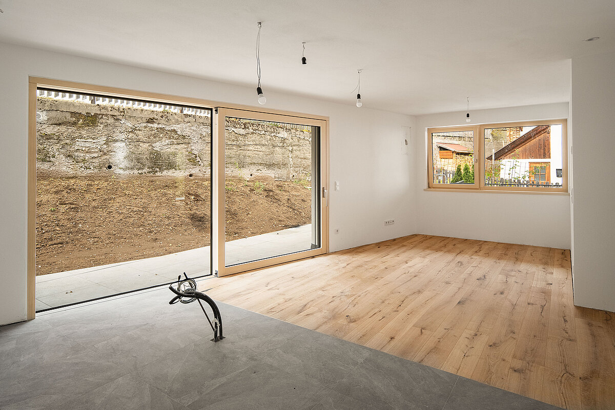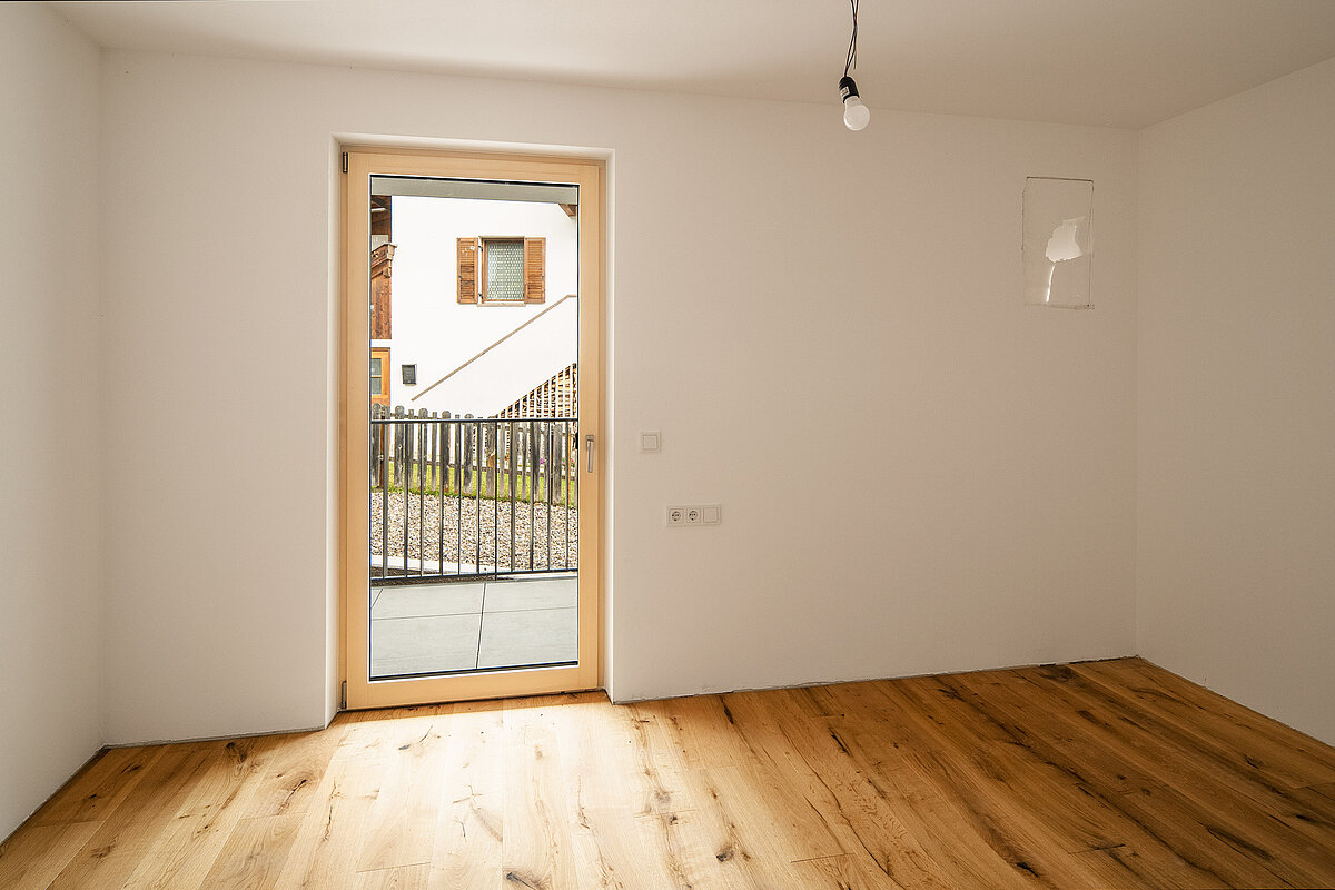 In Nova Levante we offer a beautiful two-bedroom apartment on the second floor for sale. The new residential complex is being built in accordance with the A-Natur-Klimahaus guidelines. During the construction of the residential building, particular emphasis was placed on energy-efficient living quality, security, sound insulation and sustainability. The building comprises 10 bright apartments with sunny terraces, gardens and balconies. Inside the apartment you will find the entrance area through which you enter the bright living and dining area from which you reach your own garden. From the living room you reach the large bathroom with shower and the two bedrooms, both of which have access to the terrace, from which you have a breathtaking view of the rose garden. The garages and a separate bicycle room are located in the basement, while the cellars are on the first floor. The sunny village center is only a few minutes' walk away and invites you to stroll around. The state capital is also easily accessible by car and public transport.