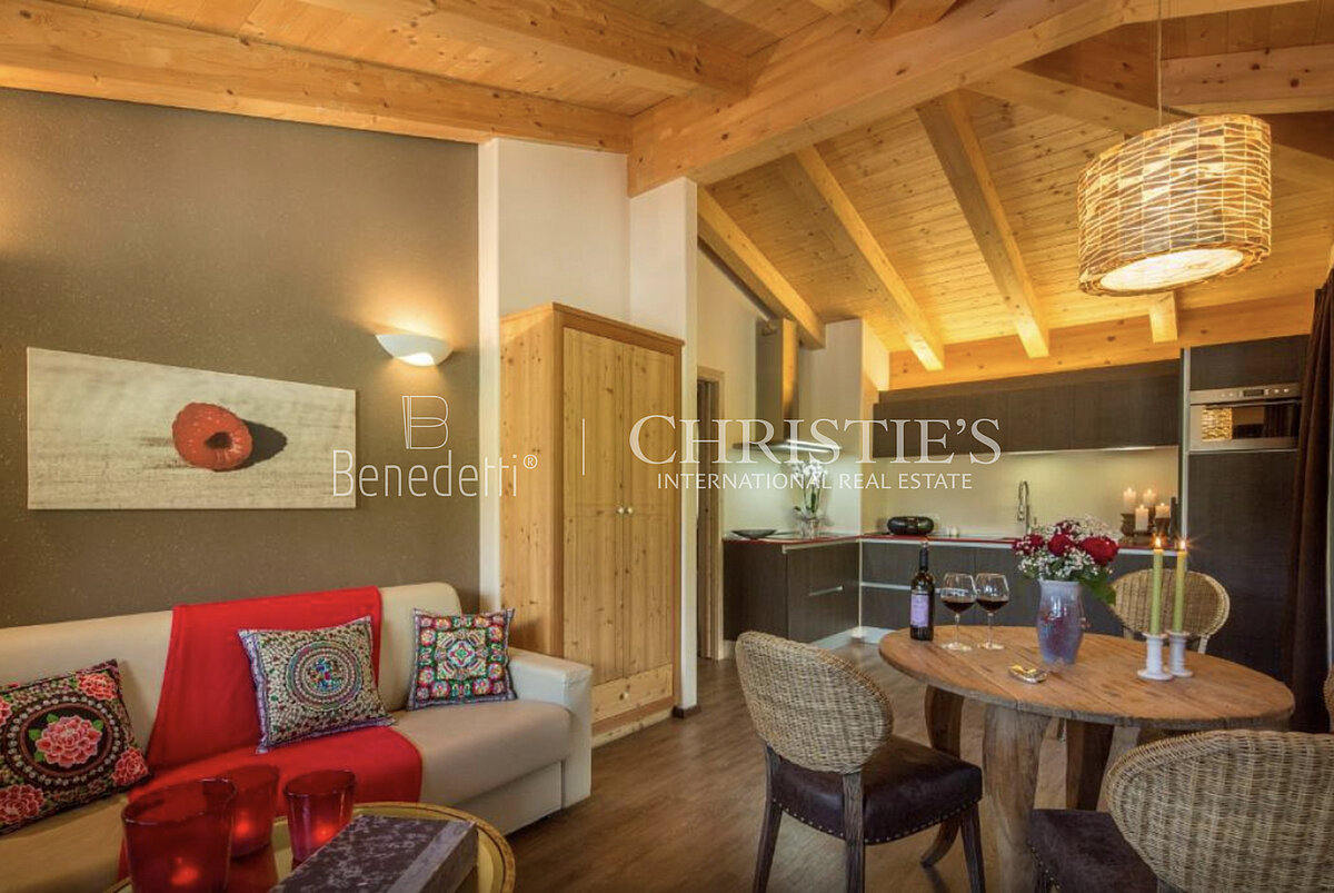 Outdoors, a beautiful open-air swimming pool completes the property, offering moments of pure well-being with views over the surrounding Alpine landscape.