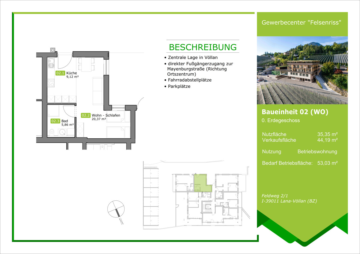 → Company apartment: (required company area of 53.03 m²)