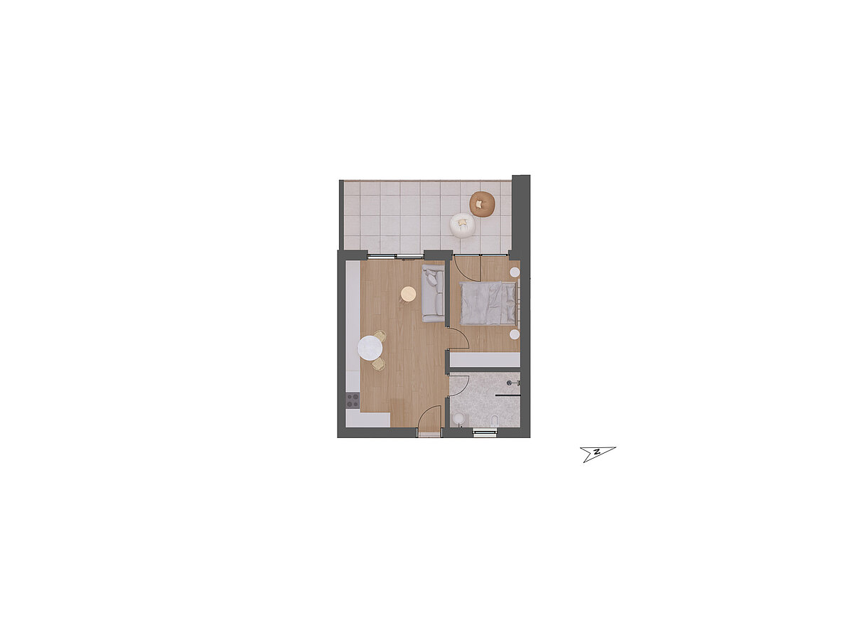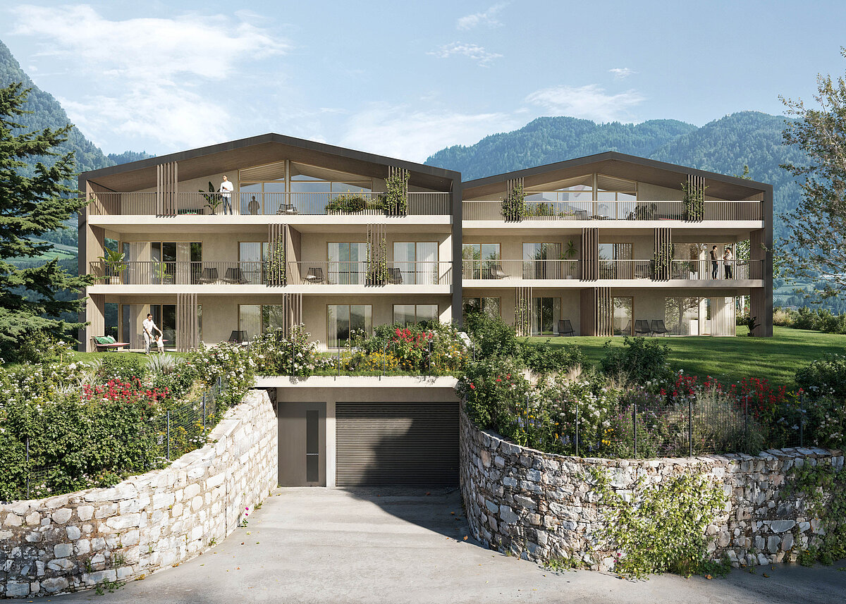 This newly built apartment in Merano/Maia Alta features a clearly structured floor plan and modern amenities in accordance with the ClimateHouse A-nature standard. The bright living and dining area with integrated kitchen opens directly onto the sunny terrace, which offers additional outdoor living space. The bedroom is quietly located and offers a pleasant retreat. The high-quality bathroom rounds off the functional floor plan concept. Triple-glazed wood-aluminum windows, underfloor heating with cooling function, decentralized living space ventilation, and the photovoltaic system ensure efficient and sustainable energy use. The combination of new-build quality and a cozy terrace creates an appealing living atmosphere in a quiet location in Merano. A single garage is available for €44,000 and a double garage for €88,000.