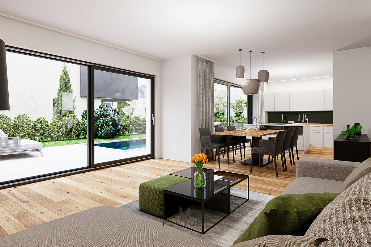 This exceptional construction project combines modern living with the highest level of comfort in a quiet yet central location. Stylish single-family homes with private pools, elegant semi-detached houses, and attractive 3- to 4-room apartments are being built here.