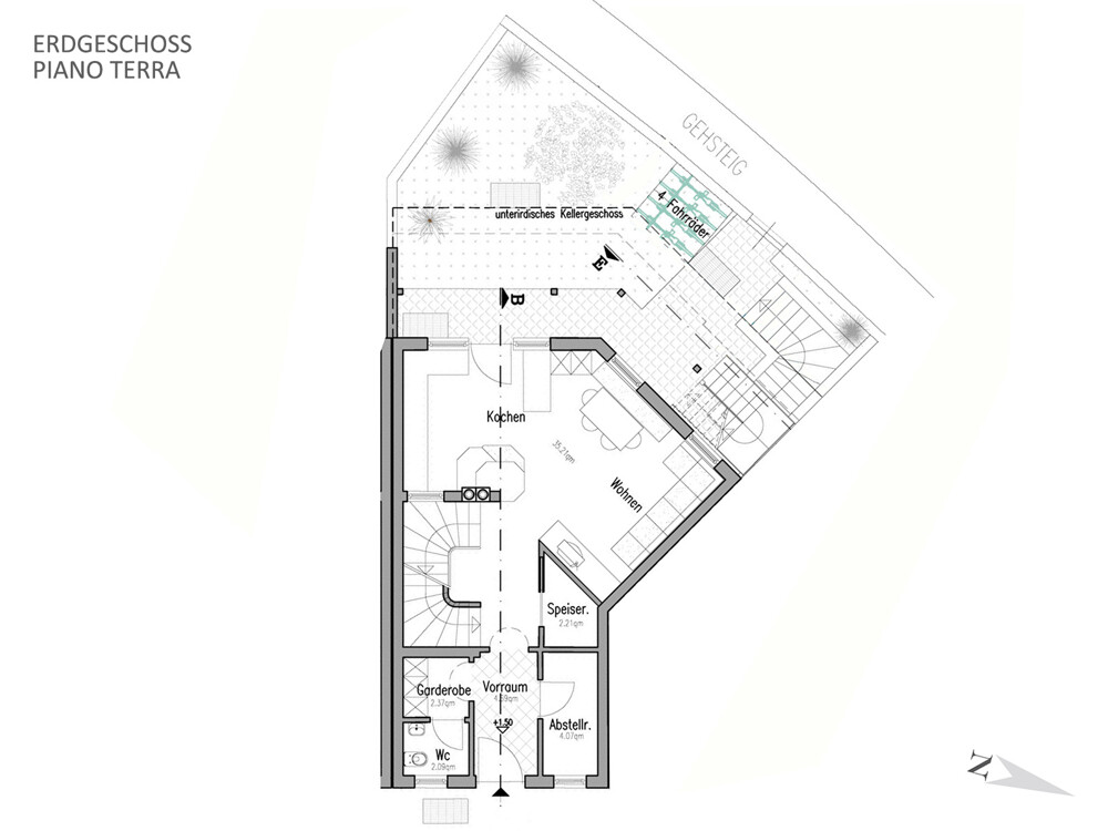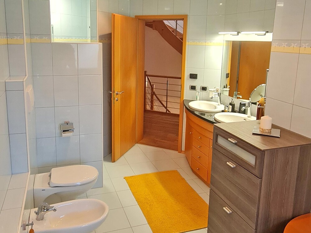 PLUS: Ready for immediate occupancy - CasaClima B standard - Eco-friendly construction with wall heating and triple glazing - Solid wood elements for floors, furniture, and stair railings – untreated & natural finish - Separate access for each floor - Attic floor unrestricted – perfect for expansion or investment - Large sunny garden - Public parking spaces in the courtyard