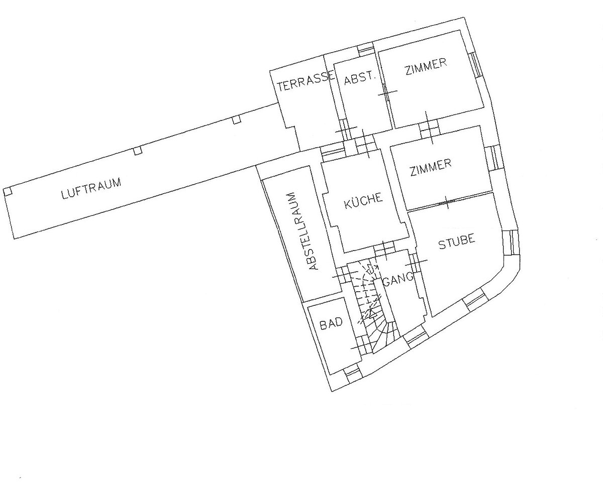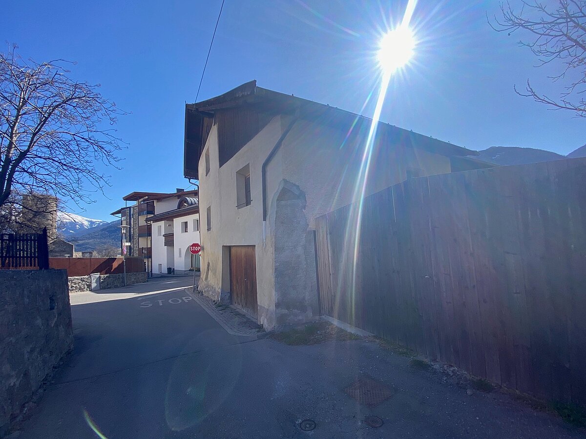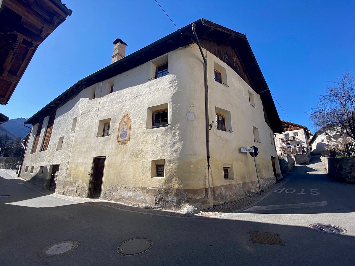 A residential building in need of renovation is for sale in the center of Malles. It is located close to stores, bars and restaurants. The house is attached to a farm building on the east side and is divided as follows.
