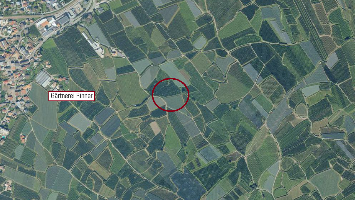 An orchard in the "Weissacker" in Laces is for sale. The property is planted with apple trees of the "Golden Klon B" variety and has a cadastral area of 1,342 m².