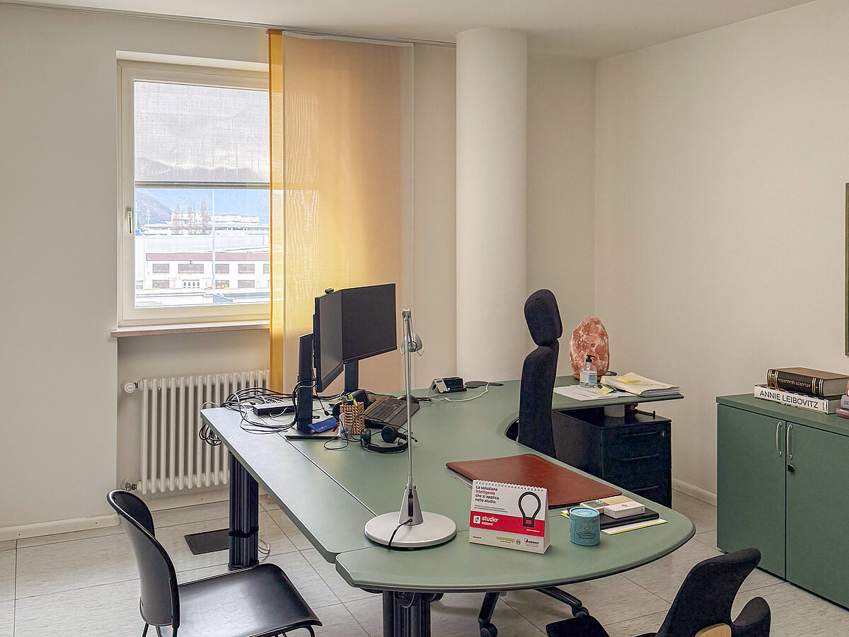 Spacious and bright office space of approx. 260 square meters located in the industrial area of Bolzano, on the third floor of a building in a strategic and easily accessible location. The property is in excellent overall condition and consists of nine separate offices, two restrooms, and a reception/administrative office at the entrance. Available from 01/07/2025.