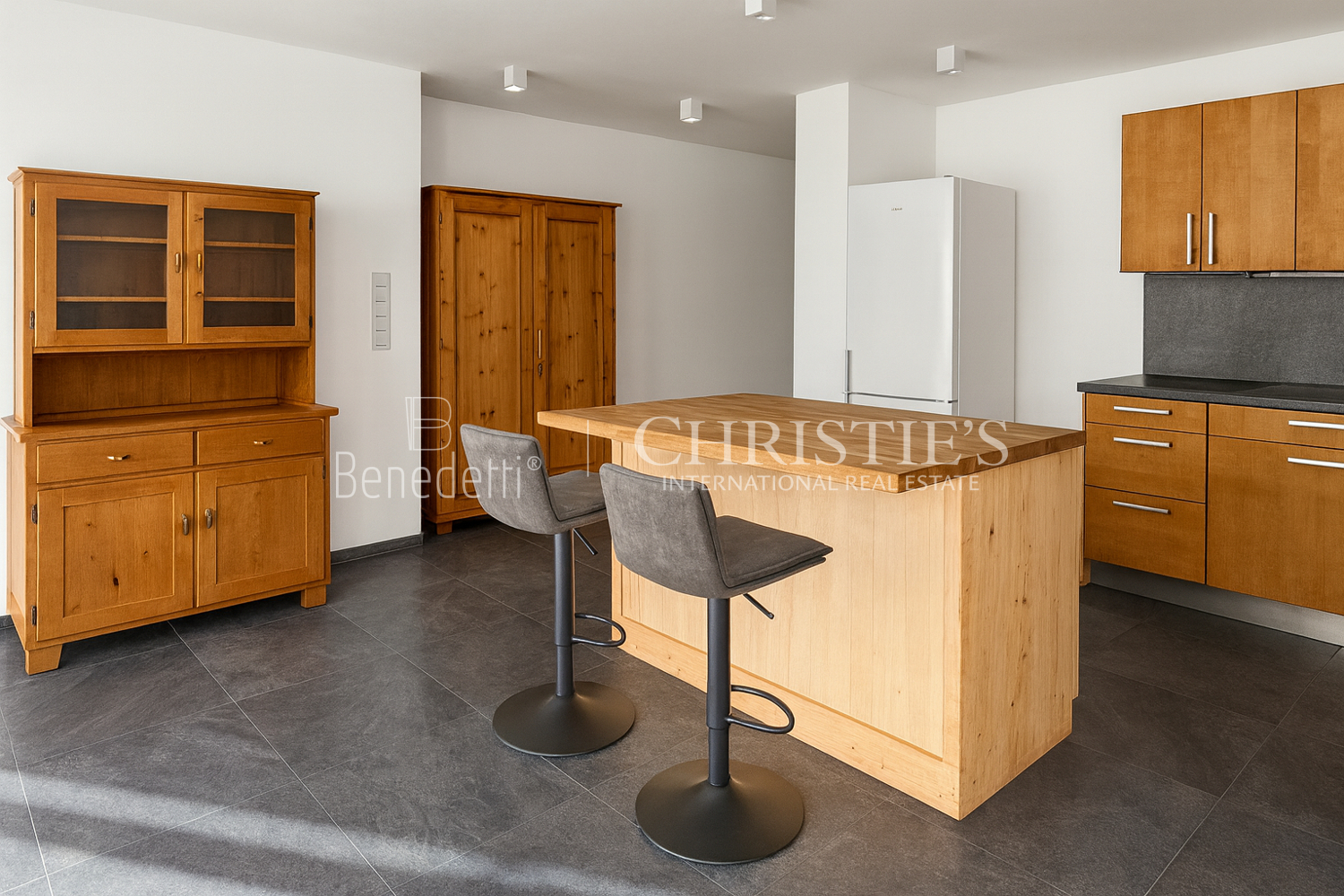 The property is located in Pizack, a quiet and sunny district of the municipality of Funes, nestled within the impressive mountain landscape of the Dolomites. This setting stands for authenticity, quality of life, and a natural harmony between architecture and the surrounding environment. Slightly elevated, the house enjoys ideal sunlight from morning to evening and offers a magnificent panoramic view over the Funes Valley and the Odle peaks.