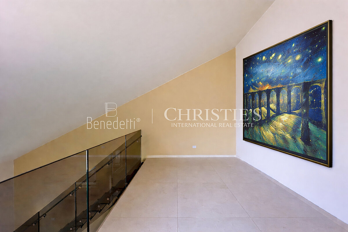 A new glass staircase takes you to the upper floor and the last floor, where a bright anteroom leads to another room that can be used flexibly and is ideal as a bedroom or cozy living room. From here, you can access a smaller balcony with a north-west orientation as well as the spacious sun terrace with wonderful south/east views - a highlight for anyone who loves outdoor living. A further modern bathroom with skylight provides additional comfort.
