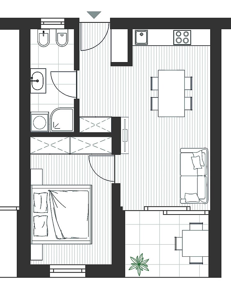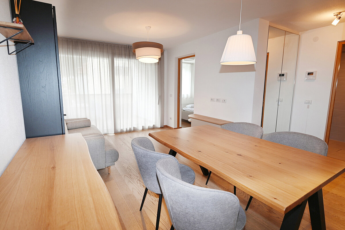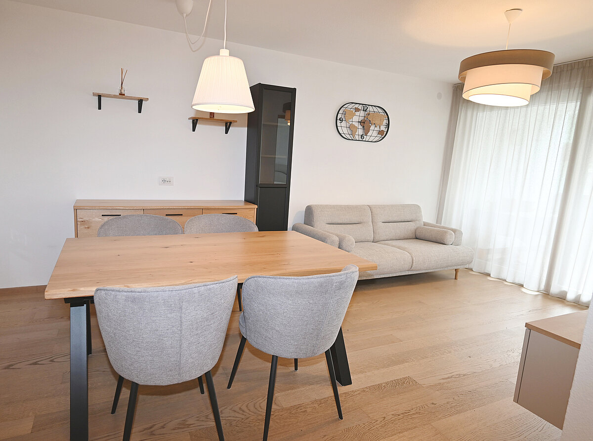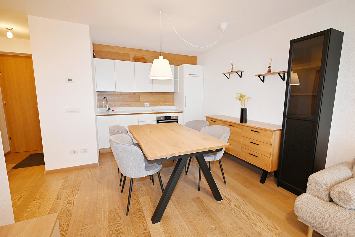 Bright, well-designed two-room apartment on the second floor of a 2016-built multifamily building in central Brunico. Close to the train station and supermarket. Rooms are filled with natural light via large windows. The open-plan kitchen and living area have direct access to a balcony, perfect for relaxing outdoors. The spacious bedroom offers tranquillity. The modern bathroom includes a shower and washing machine. The apartment is fully furnished with contemporary, high-quality furniture. An elevator provides easy access, and a cellar storage room and a garage parking space is included. Enjoy the convenience of a central location with everything you need for city living.