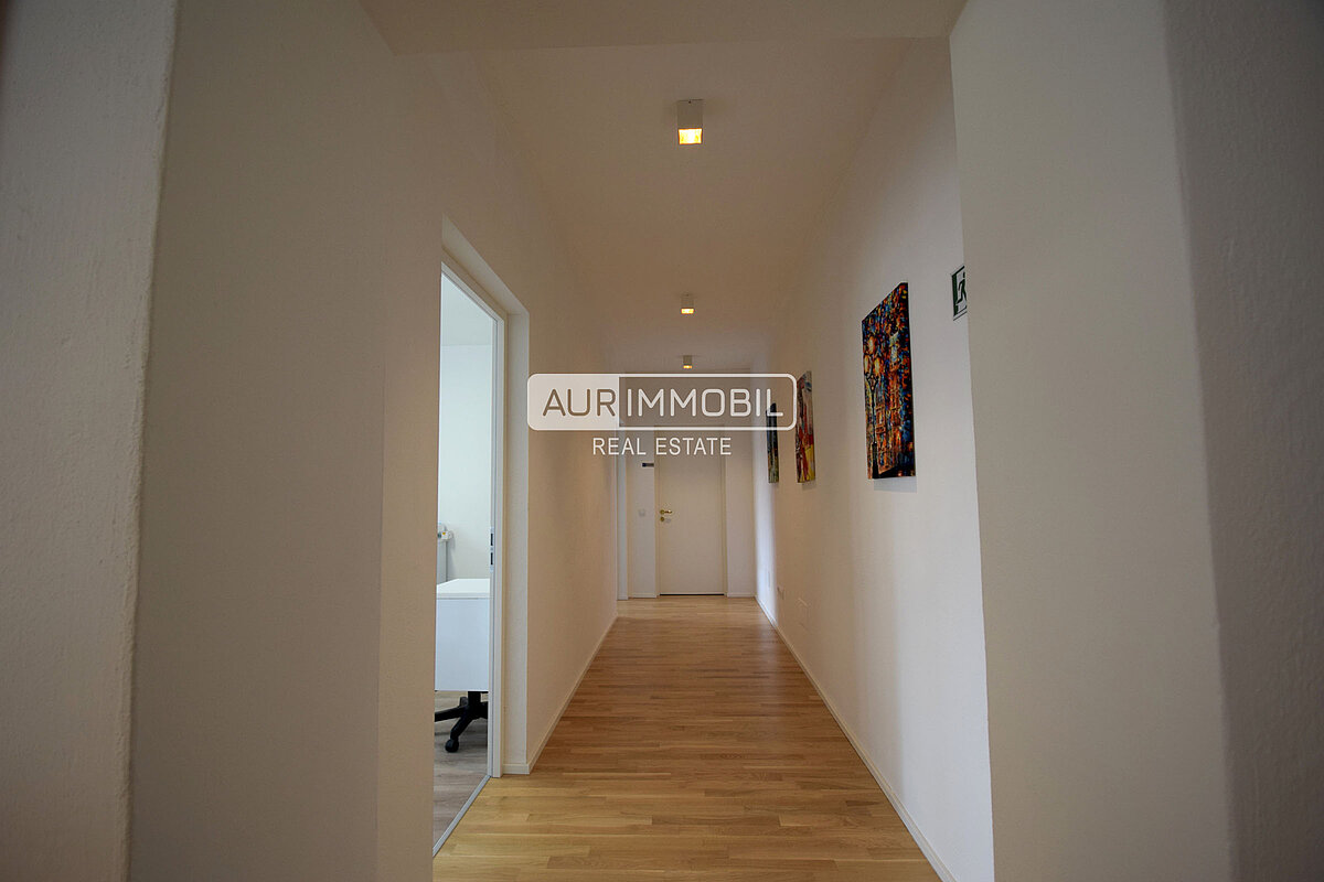 Business space for rent on the first floor in Brunico, consisting of three offices and one bathroom.