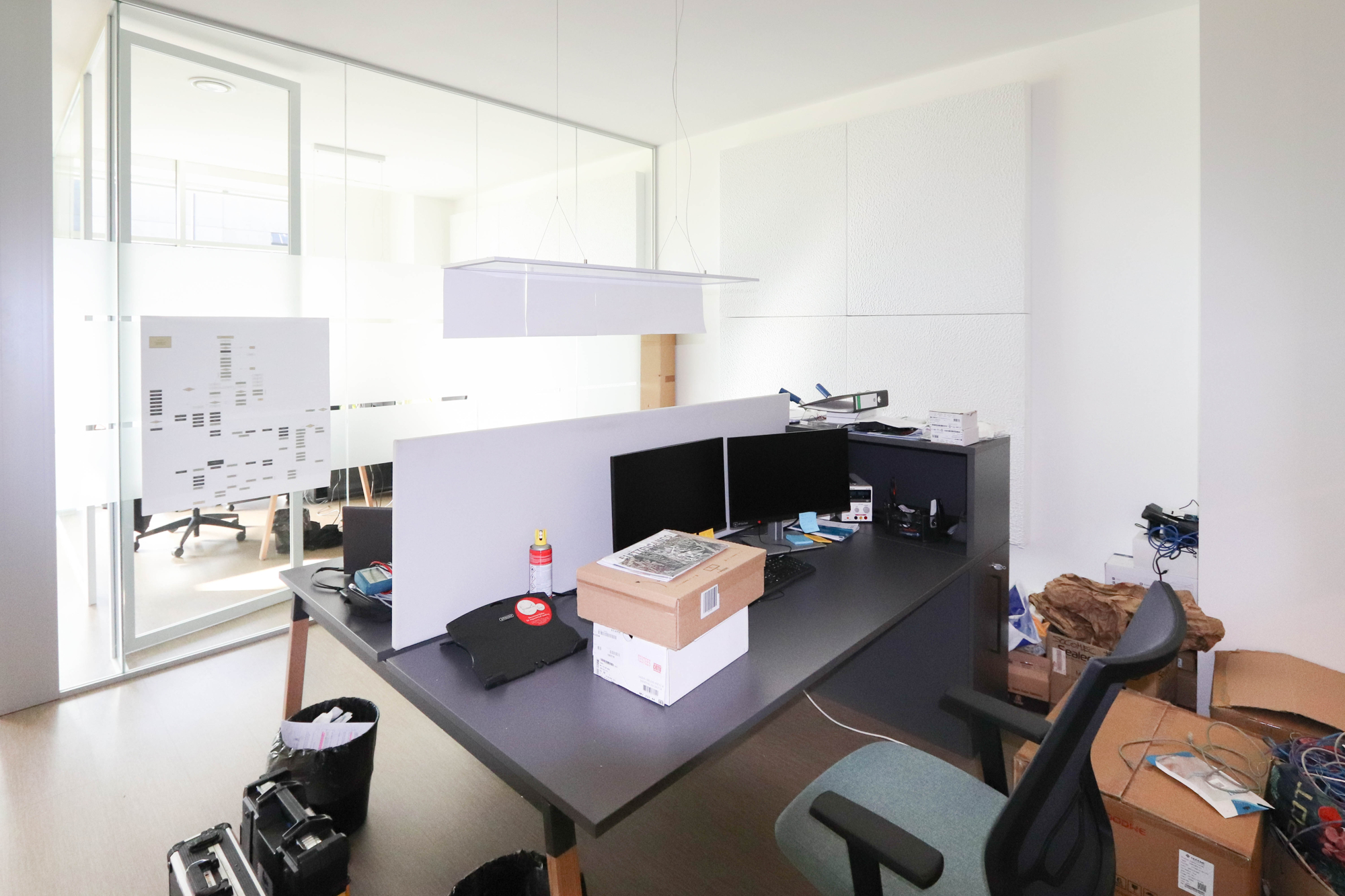 The furnishings (glass partitions in the front area, the kitchen, acoustic panels, carpet in the rear area, all lighting fixtures, and the furniture) can be purchased from the current tenant for €30,000.