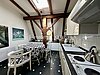 The apartment is situated on the 4th floor and offers a spacious open-space layout (94 m²) with high-quality solid wood flooring, exposed beams, and a functioning fireplace that adds a cozy touch. From here, one can access the generous panoramic terrace with stunning views. A simply designed kitchen with skylight and a bathroom with bathtub complete the property, offering great potential for customization.