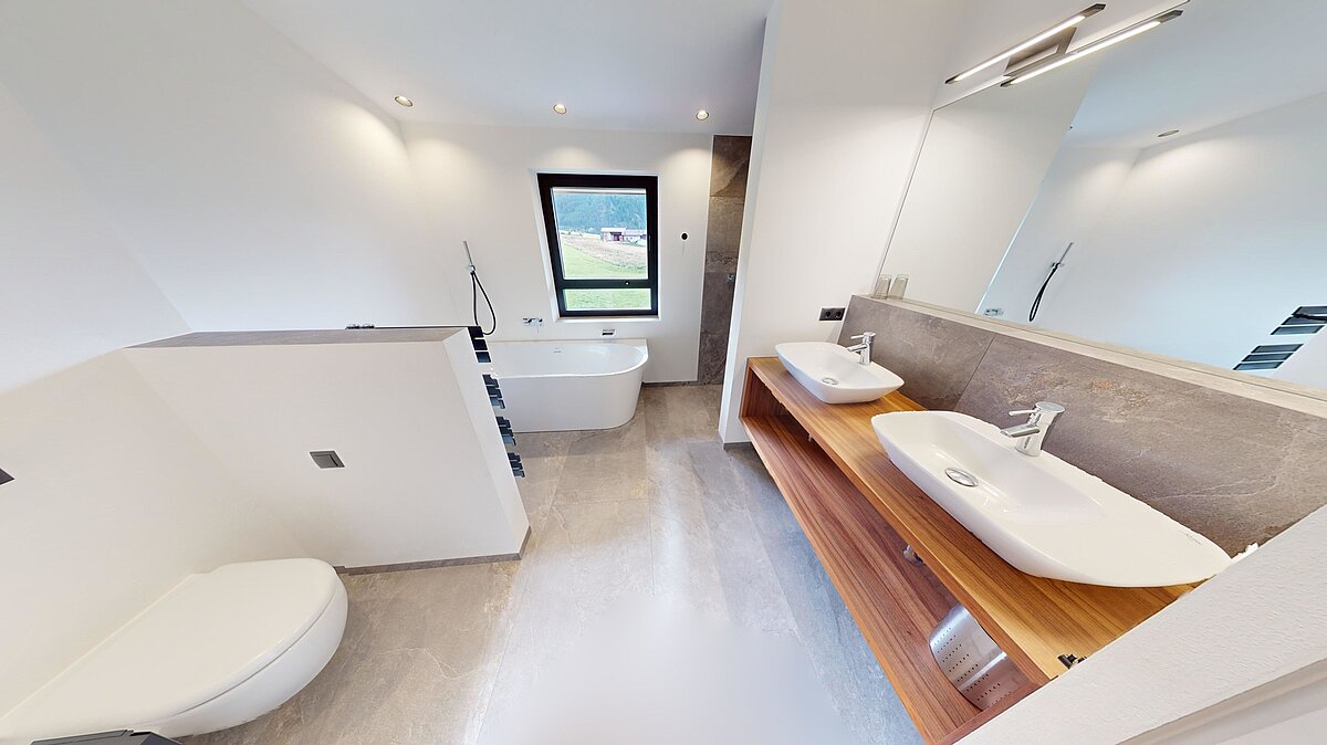 - High-quality, functionally designed bathroom with bathtub and rain shower