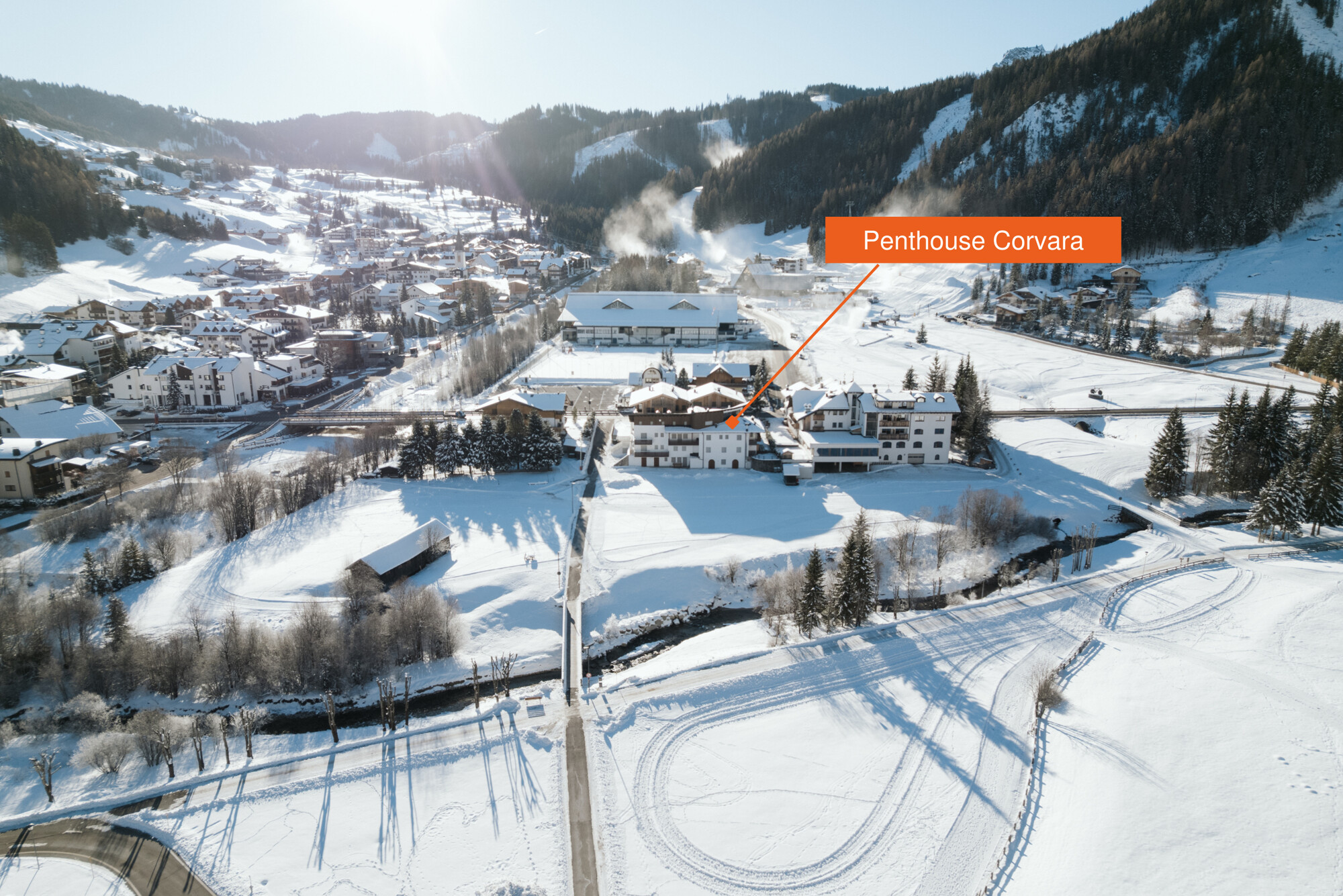 In the centre of Corvara in Badia, one of the most renowned and sought-after destinations in the Dolomites, this penthouse enjoys a privileged residential position. Framed by the impressive Sassongher and the majestic Sella Massif, the location offers a perfect balance between alpine lifestyle, tranquillity and first-class infrastructure.