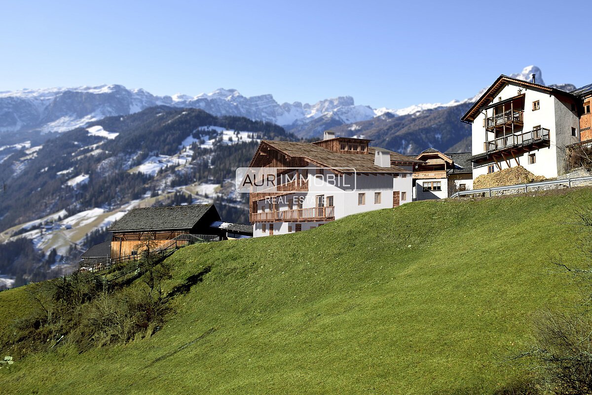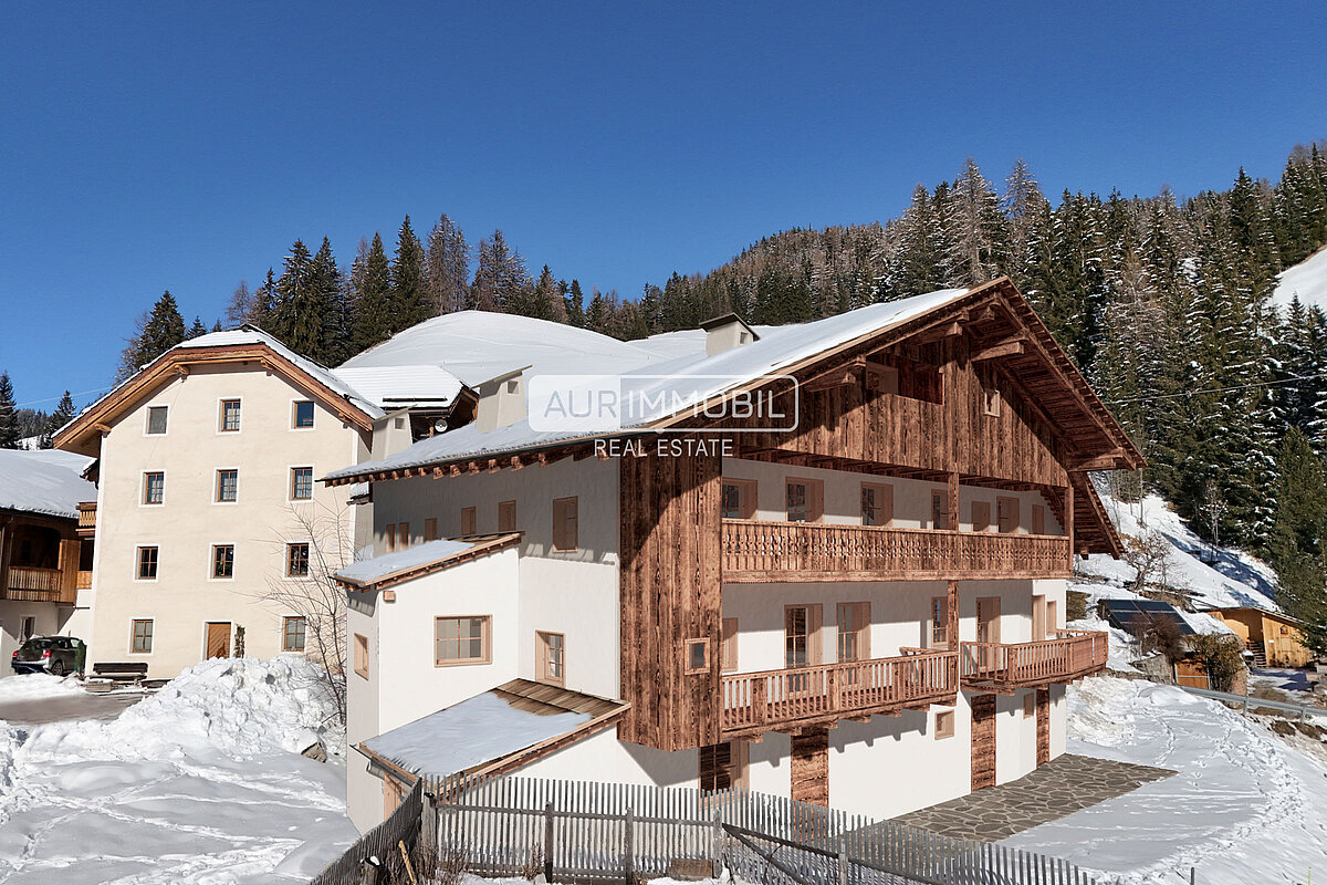 Sometimes a dream home becomes a reality – and this is one of those rare occasions. Les Viles Ciampei is designed for those with refined taste and will surely capture your heart. This historic property is situated at an altitude of 1.500 meters on the sunny slopes of the Val Badia valley. From here, the view stretches in all directions, offering a breathtaking panorama of the region's most famous peaks – a truly mesmerizing sight. The luxurious apartment boasts spacious rooms and a private wellness area. With cutting-edge technology, including full electrical shielding and a smart-home system, comfort is guaranteed. Here, your dream home comes to life.