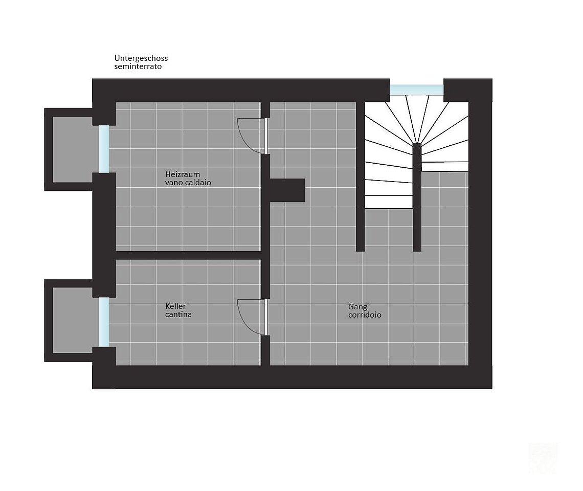 The ground floor is accessible via a wheelchair-friendly ramp. There are two large rooms, a storage room and a WC. In the basement, which is accessible via an internal staircase, there is a cellar and a boiler room.