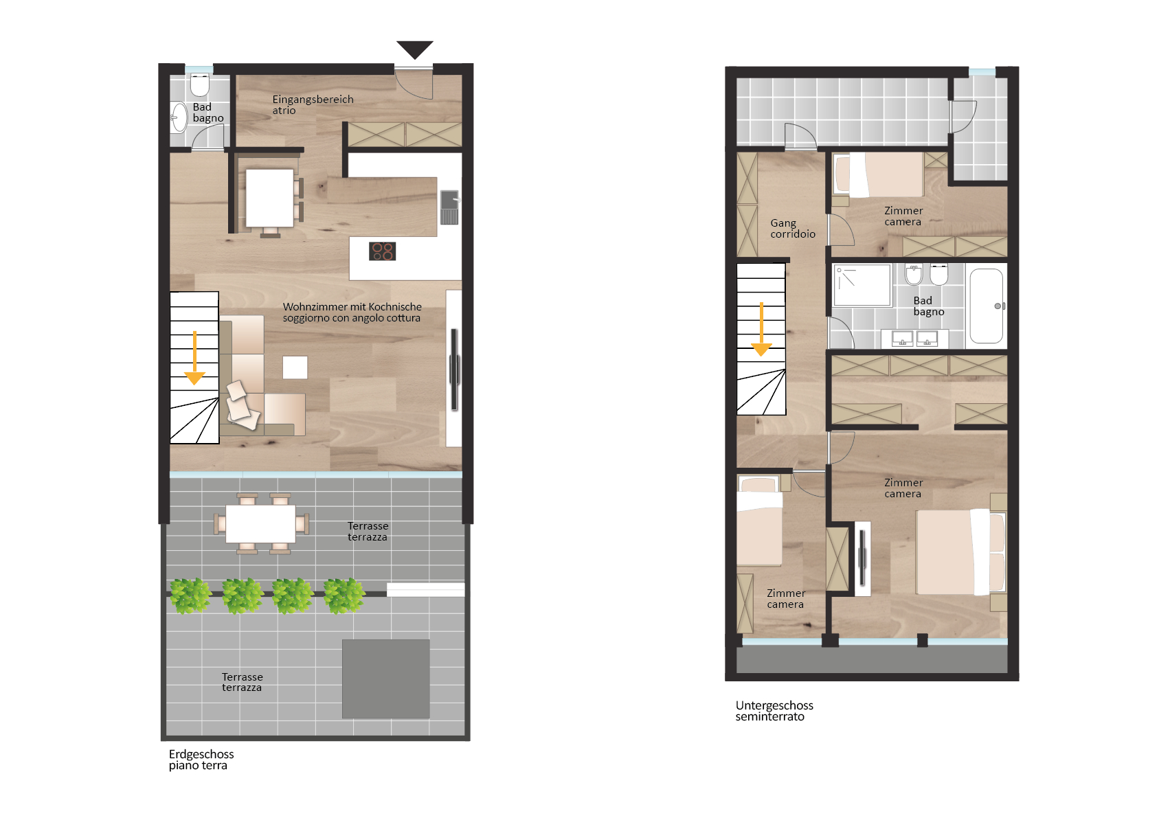 We are selling a spacious apartment on two floors in the center of Brunico.
