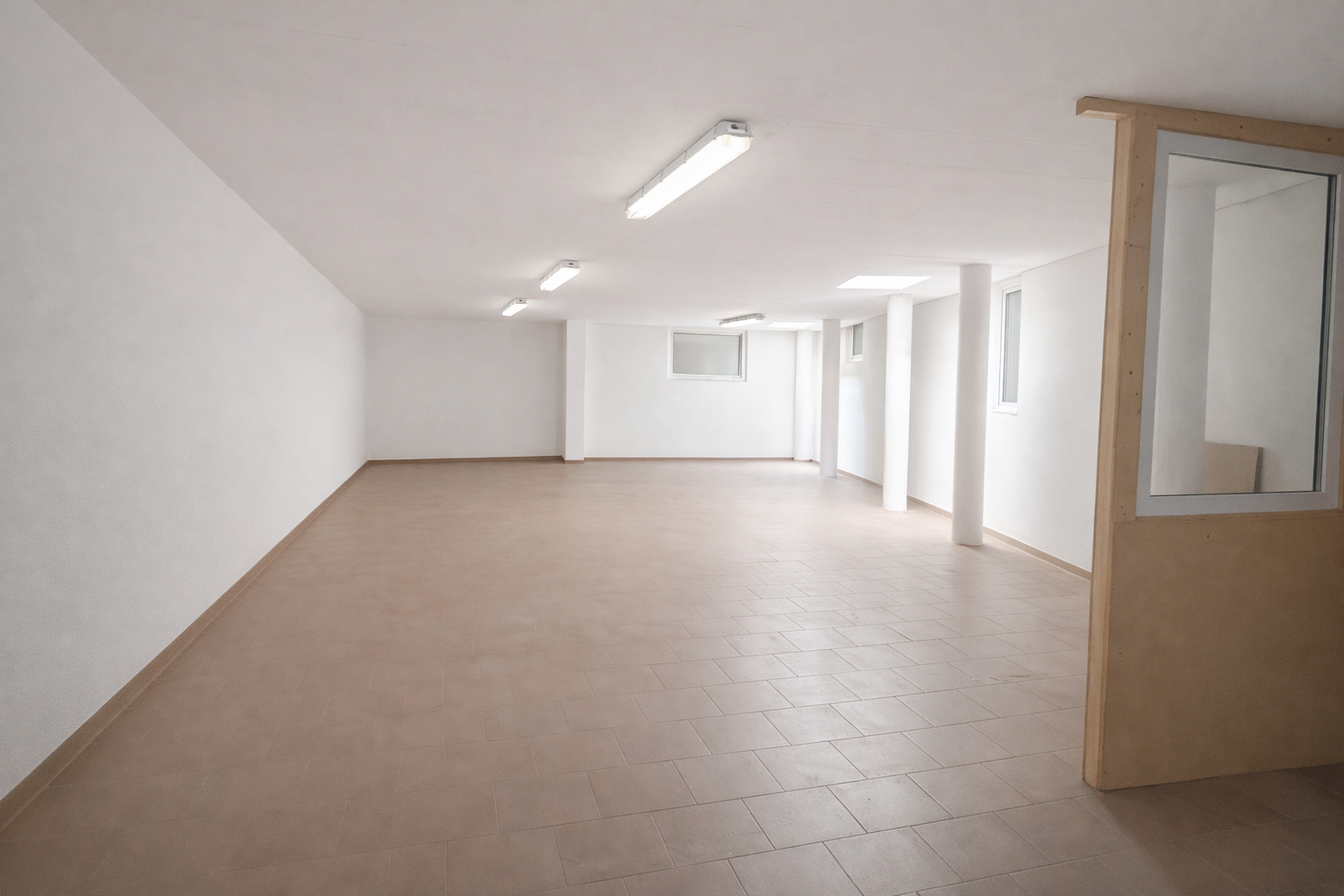 The associated storage area can be accessed directly with a vehicle via a garage door, which enables easy delivery and logistics. The storage areas are divided into four storage rooms.