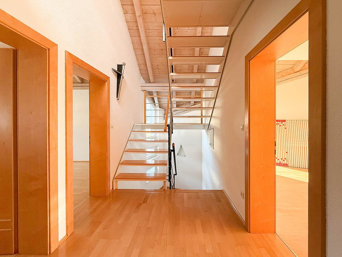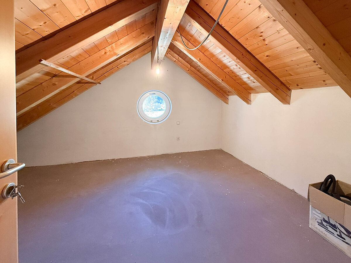 On the first floor there is a kitchen, a living room, a daytime WC and a room with its own bathroom. On the second floor there are four bedrooms and a bathroom with a window. The attic offers additional living space with two heated rooms and plenty of storage space.