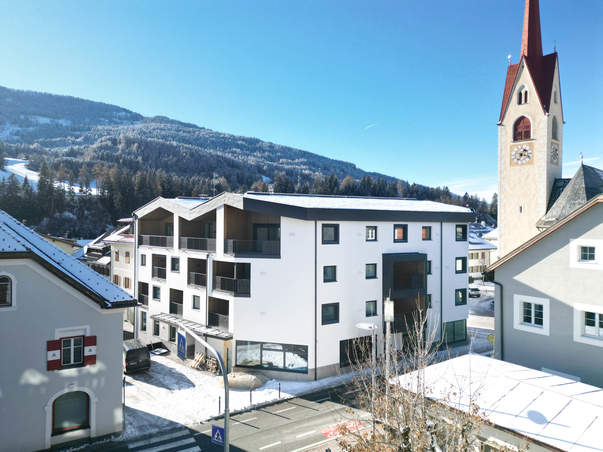 3-room new construction apartment in the attic with a balcony and Dolomites view in the center of Monguelfo for sale - W17.