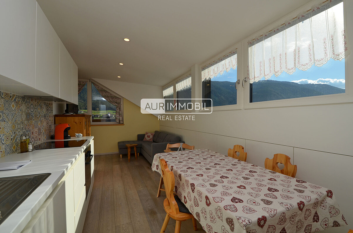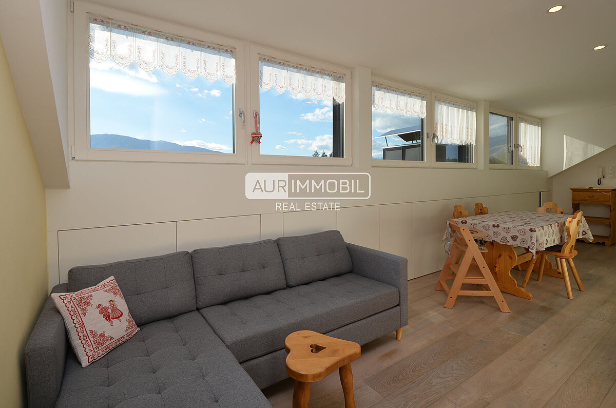 In Riscone, just a short distance from the center of Bruneck, this charming top-floor apartment combines tranquility, comfort, and modern living. Fully renovated in 2019, every detail has been carefully designed, reflecting quality, harmony, and a refined sense of style. High-quality materials and the ClimaHouse B energy rating ensure a pleasant indoor climate and lasting comfort.