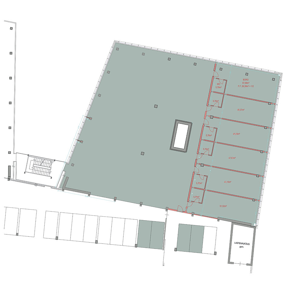 The Warehouse with communal goods elevator on the 4th floor are currently subdivided, but can be completely reopened. The warehouse also includes four parking spaces.