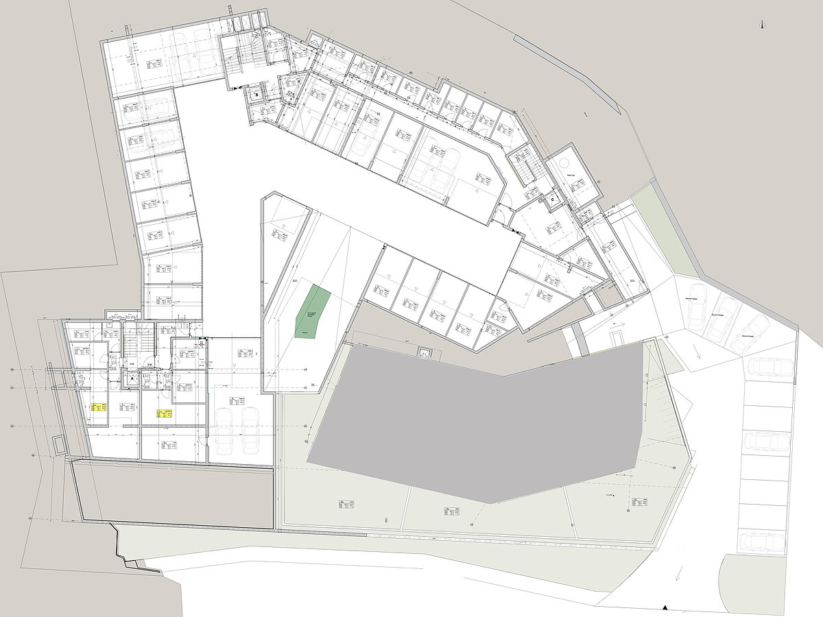 I posti auto in garage nel seminterrato possono essere acquistati separatamente come opzione (garage box: 35.000,00 euro; garage box doppio: 58.000,00 euro).