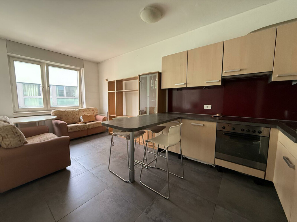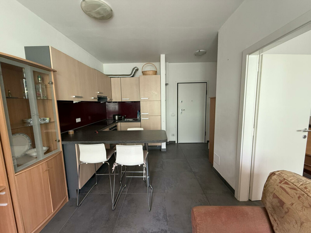 L’appartamento si distingue per una distribuzione degli spazi funzionale ed è composto da una luminosa zona giorno con cucina, una camera da letto e un bagno. Una cantina offre ulteriore spazio di deposito.