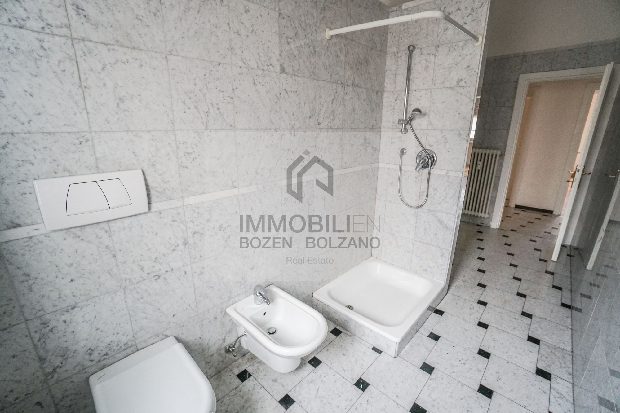 Questo ampio pentalocale con cucina separata si trova nel centro di Bolzano, al secondo piano di un edifico con la classe energetica “G”. L’appartamento ha una superficie di ca. 149 mq ed è suddiviso in ingresso con corridoio, ampio soggiorno, sala pranzo, cucina abitabile, 3 camere da letto, 2 bagni, ripostiglio e 2 balconi. L’immobile non è arredato (senza cucina). Riscaldamento è compreso nelle spese condominiali, acqua calda è autonomo.
