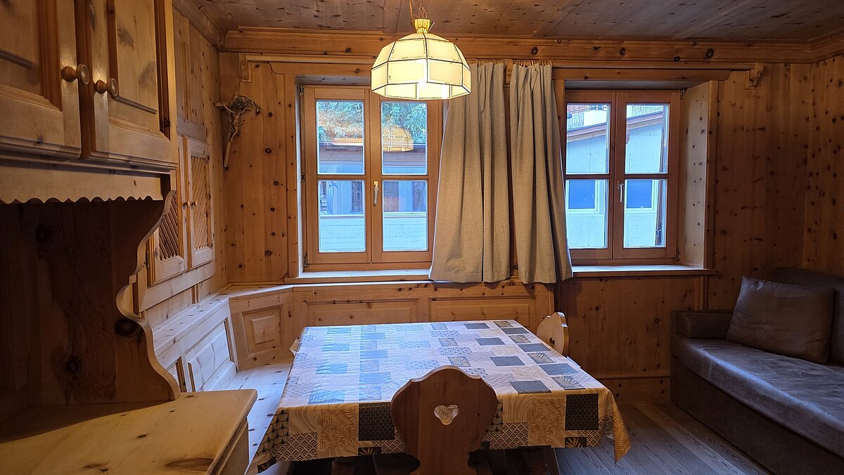Quasi tutti gli ambienti sono rivestiti in legno di cirmolo, che dona un profumo inconfondibile e un’atmosfera accogliente e rilassante.