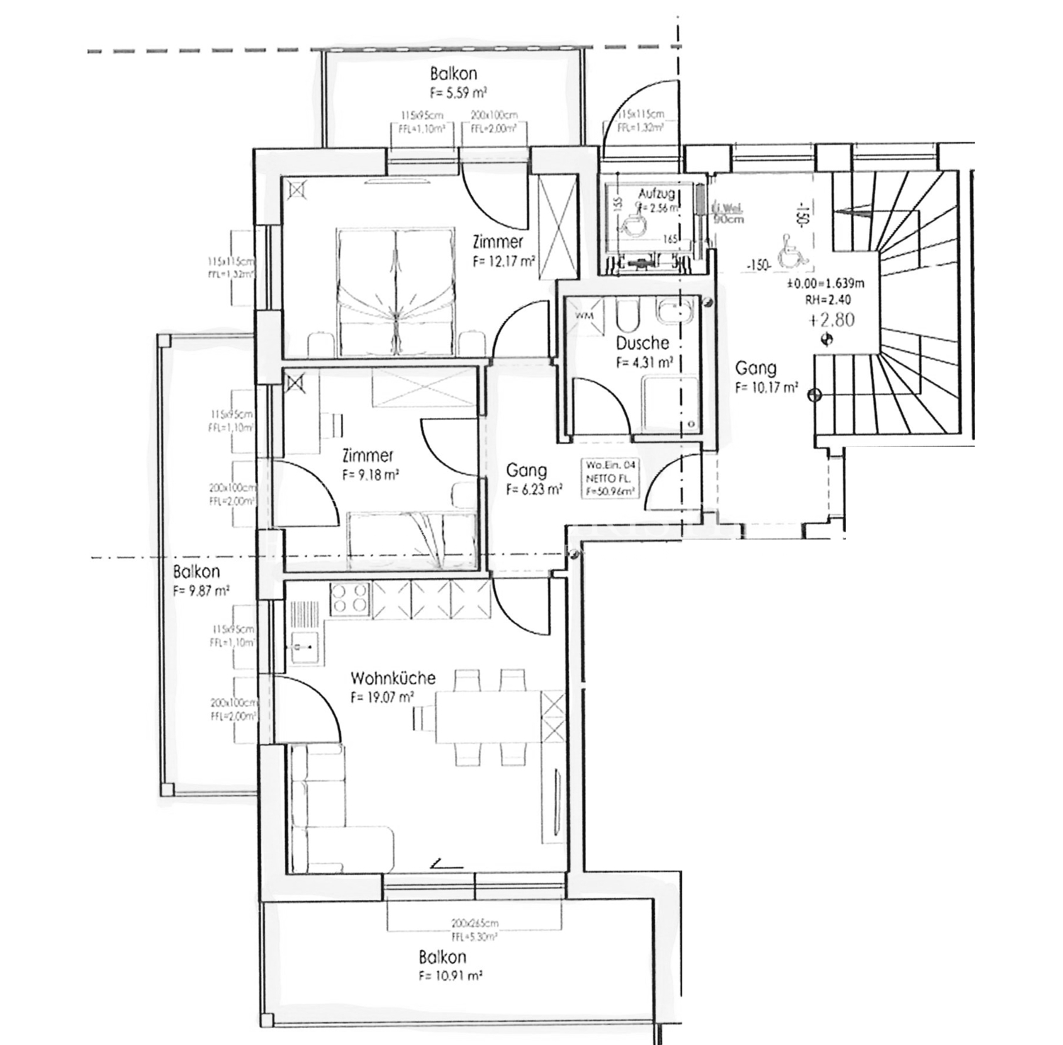 L'appartamento ha una superficie lorda di circa 65,21 m² e tre balconi di circa 26,37 m², che invitano a trascorrere ore rilassanti all'aperto, sia dopo una giornata di sci nel Paese delle Meraviglie invernali che dopo una lunga escursione sulle montagne circostanti. Un vano cantina di circa 6,8 m² è incluso nel prezzo di acquisto e offre ulteriore spazio di archiviazione.