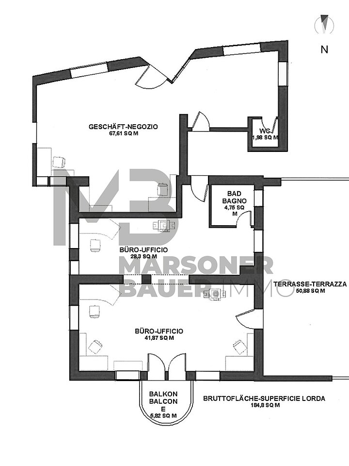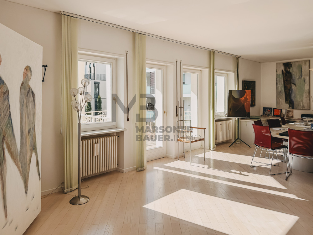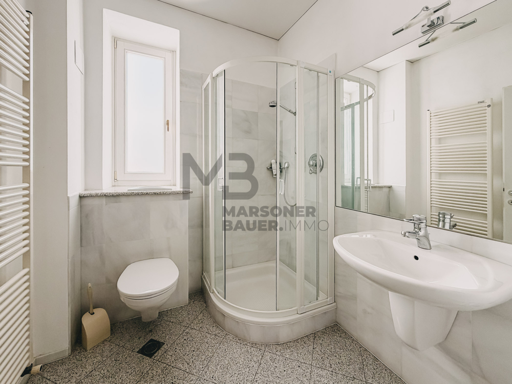 Si tratta di un immobile al piano rialzato, che può essere utilizzato come spaziosa unità abitativa, studio, studio medico o attività commerciale/negozio con due accessi separati. Questa proprietà, secondo il piano quotato, ha una superficie netta di ca. 145 mq, una terrazza a sud-est di ca. 51 mq e un balcone a sud di ca. 6 mq.