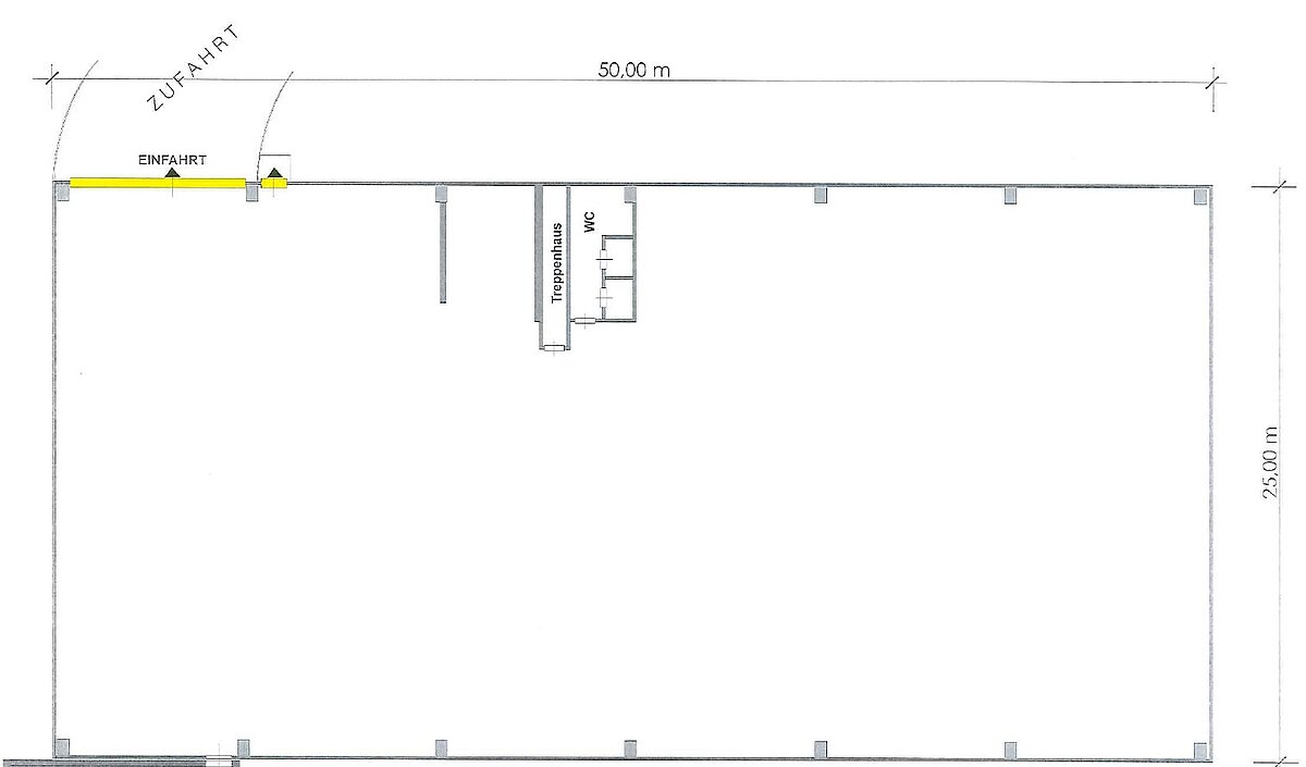 Il capannone si trova al piano terra e ha una superficie calpestabile di 1.240 m². L'altezza del capannone è di 3,4 m ed é accessibile per veicoli di trasporto a livello del suolo. La proprietà dispone di un WC e di diversi posti auto all'esterno, che possono essere affittati su richiesta.