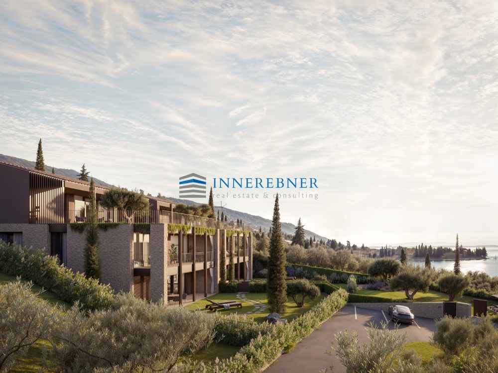 Le ampie superfici vetrate, i materiali di alta qualità e la grande privacy rendono questo appartamento un vero rifugio di benessere sul Lago di Garda.