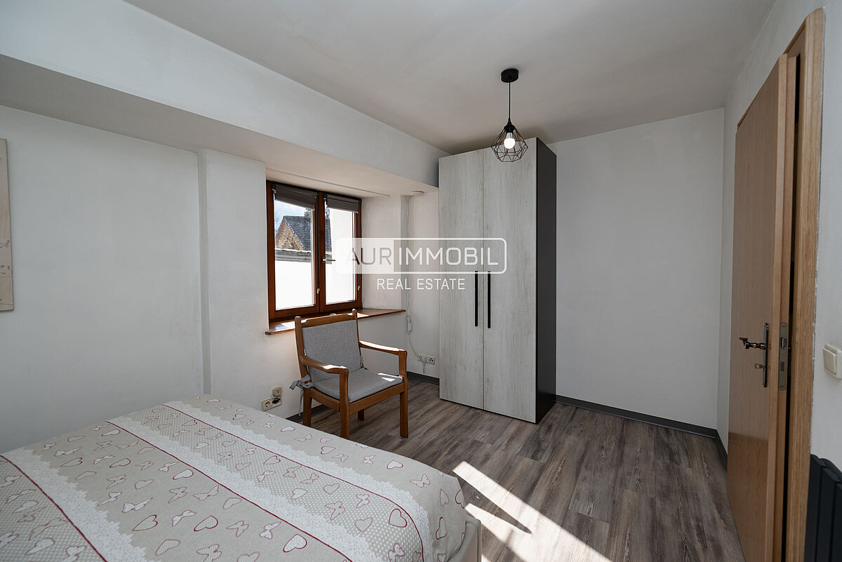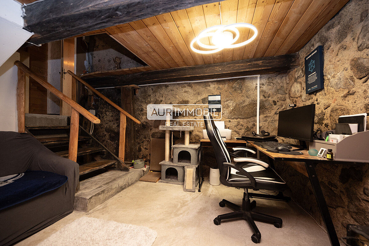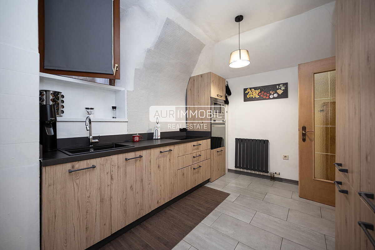 L’appartamento di cinque vani al piano terra è composto da un ingresso con corridoio, una stube tradizionale con stufa, una sala da pranzo, una cucina separata, una camera da letto, un vano hobby multifunzionale, due bagni e un ripostiglio. Tre cantine offrono ulteriori spazi versatili.