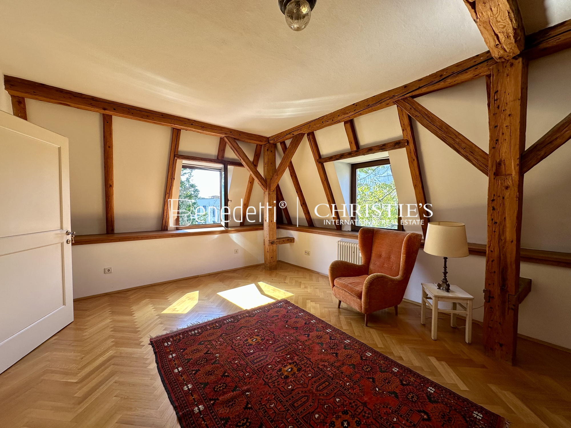 L’appartamento si trova al 3° piano e dispone di un elegante ingresso con pavimento in terrazzo, tre ampie stanze con vista sul parco storico e un WC di servizio. Inoltre, è presente un bagno allo stato grezzo. La superficie netta è di 89 m² e offre numerose possibilità di personalizzazione.