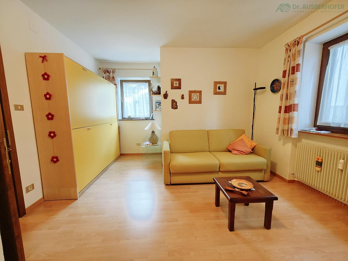 Questo appartamento ben tenuto si trova al piano terra di una palazzina multifamiliare completamente ristrutturata nel 1996 ed è composto da un luminoso soggiorno con due letti a scomparsa ribaltabili integrati nella parete e un comodo divano letto. Una cucina compatta e un bagno con doccia e finestra offrono ulteriore comfort.
