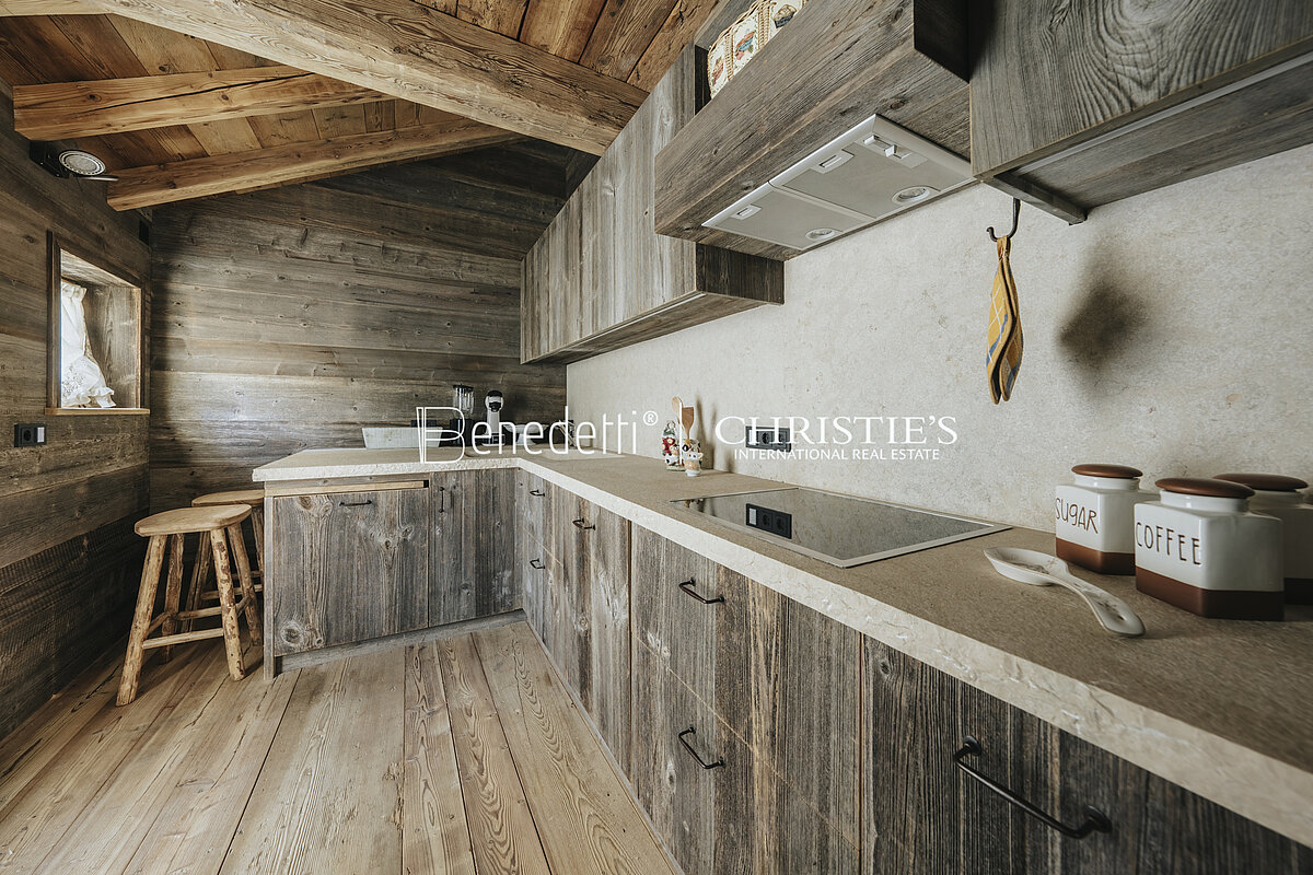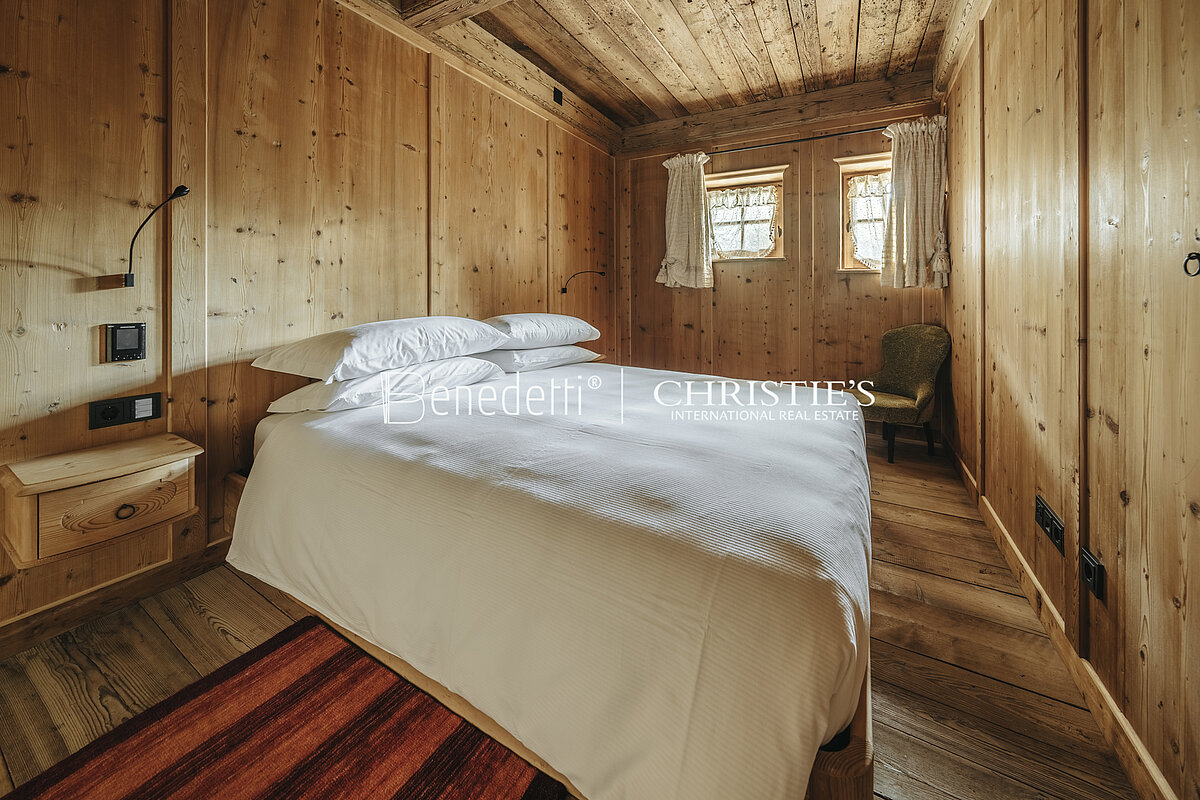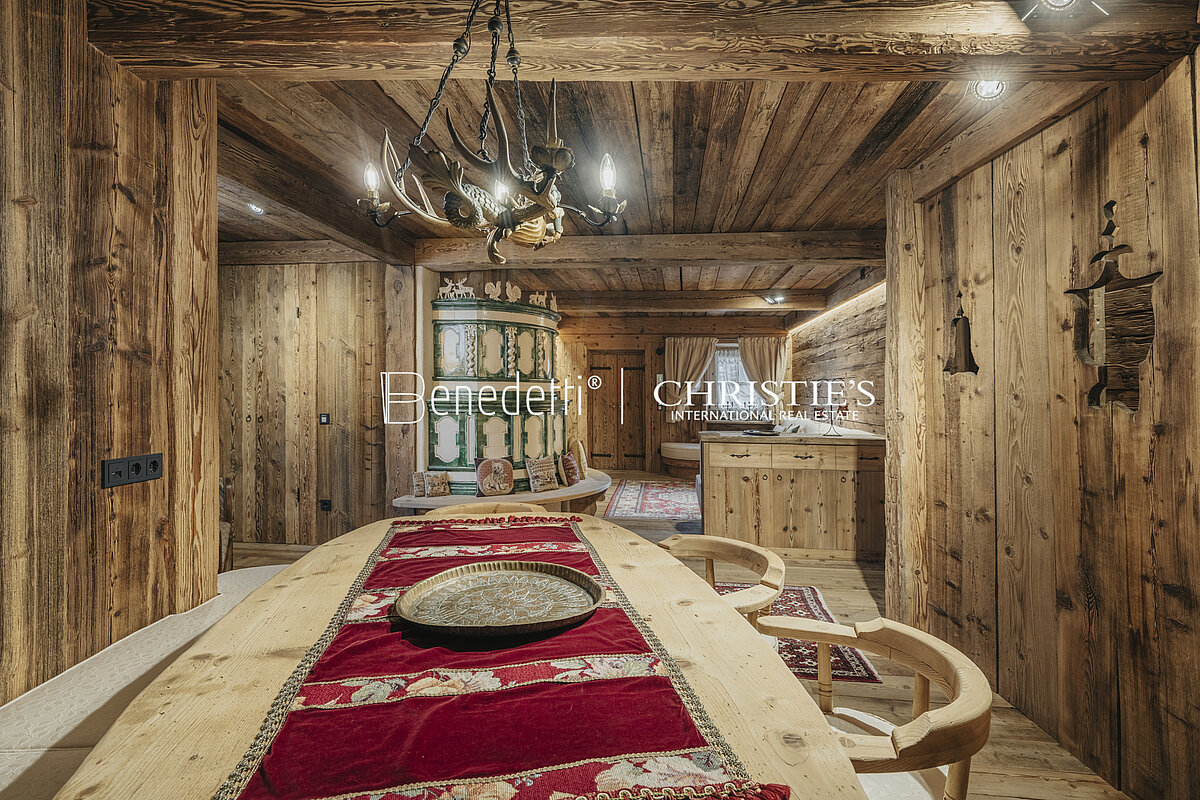 All'interno di una tipica residenza in stile ampezzano, nella panoramica frazione di Alverà a Cortina d'Ampezzo, è in vendita questo splendido appartamento di lusso, arredato in caratteristico stile alpino, completo di garage.