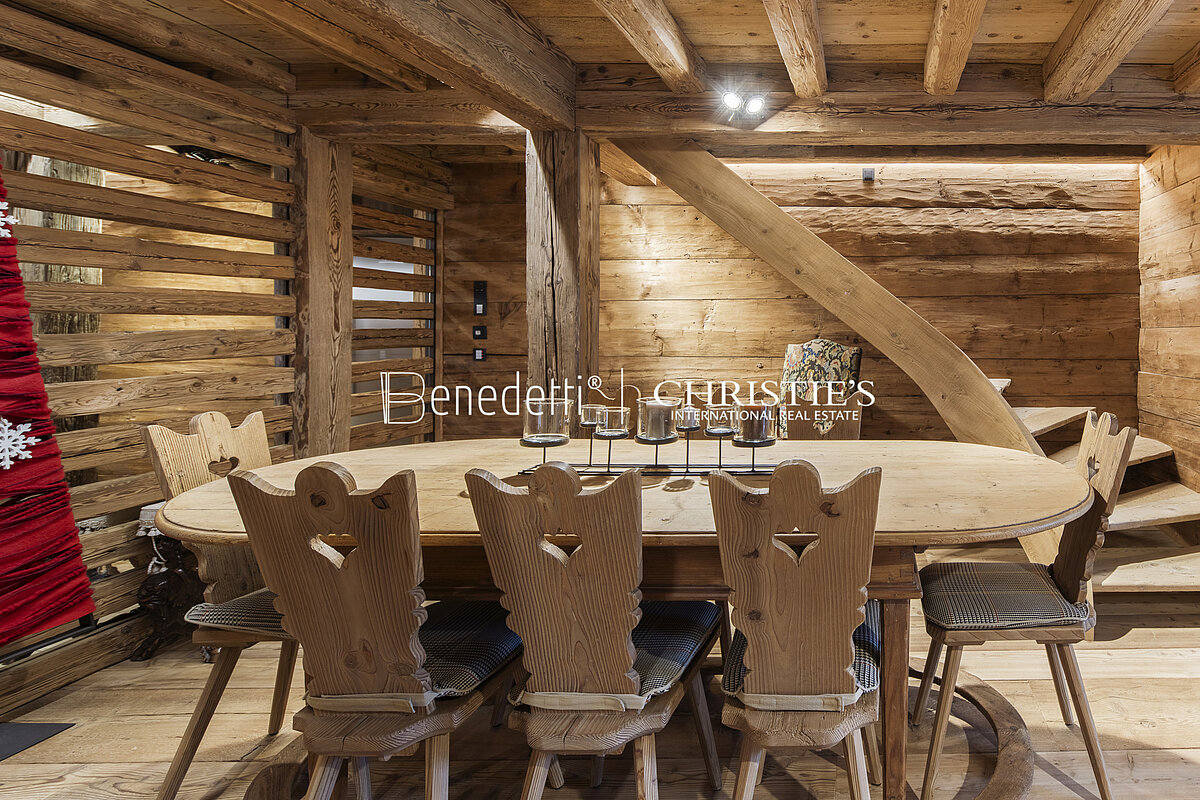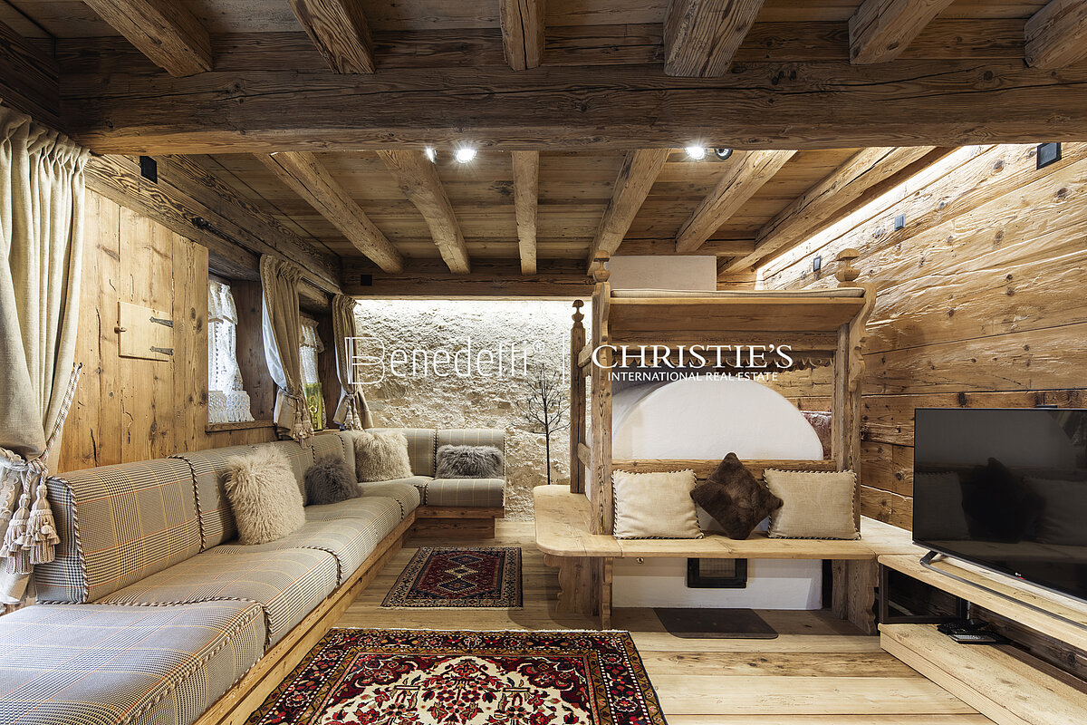 All'interno di una tipica residenza in stile ampezzano, nella panoramica frazione di Alverà a Cortina d'Ampezzo, è in vendita questo splendido appartamento di lusso, arredato in caratteristico stile alpino, completo di garage.