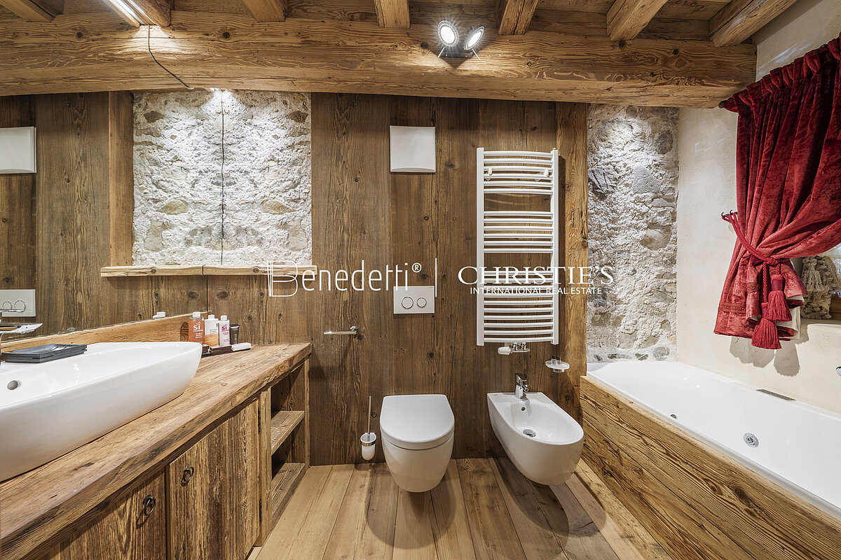 Non lontano da Corso Italia, via dello shopping e cuore pulsante della vita mondana di Cortina la proprietà vanta una superficie di 170 mq e sorge su due piani di un caratteristico chalet di montagna.