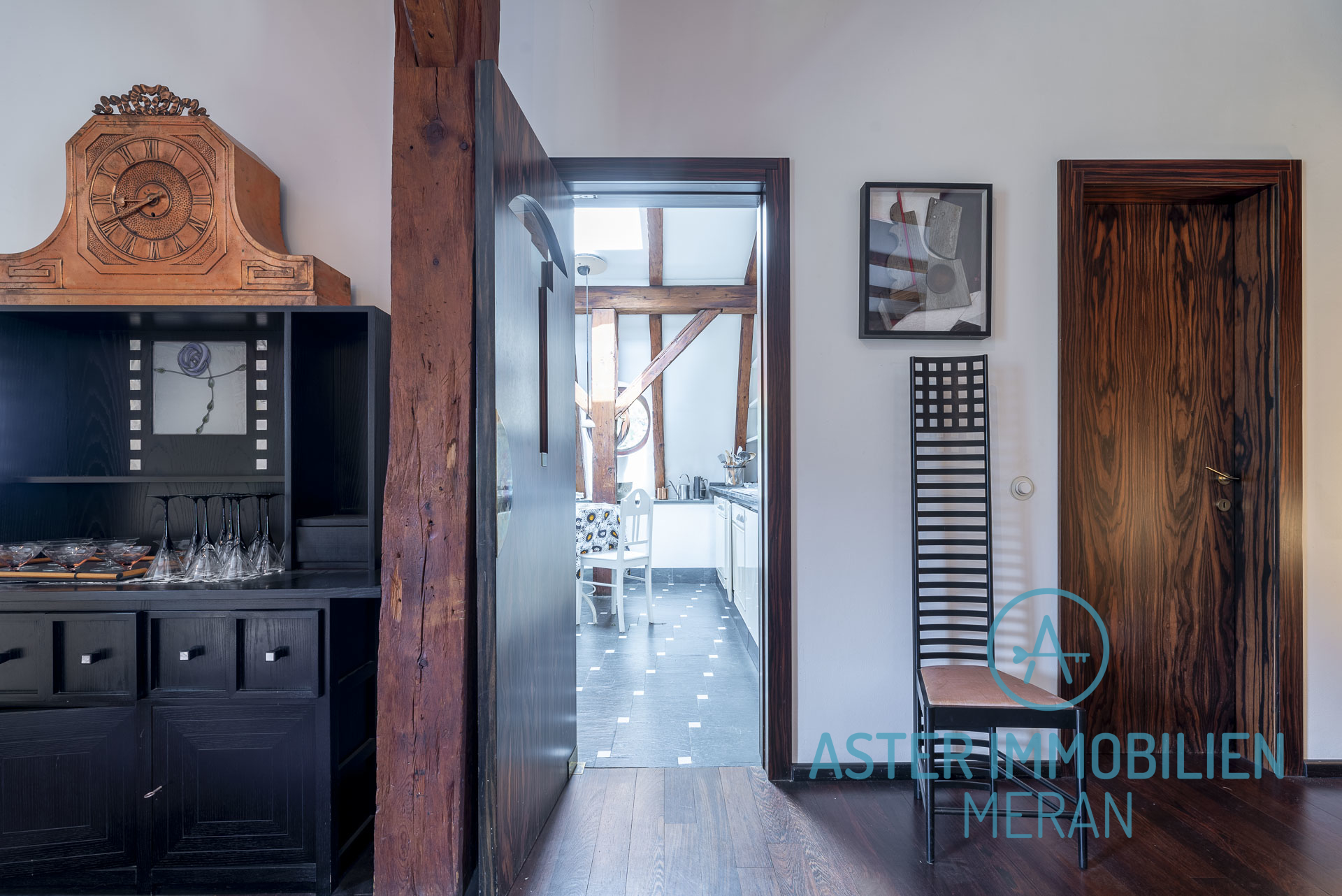 Scoprite un gioiello unico a Maia Alta/Obermais: un attico storico con appartamento in un'affascinante villa tutelata risalente al 1884. Questa straordinaria proprietà combina il fascino dei tempi passati con un moderno senso dello spazio e vi offre l'opportunità di vivere la vostra casa lontano da casa sopra i tetti di Merano.