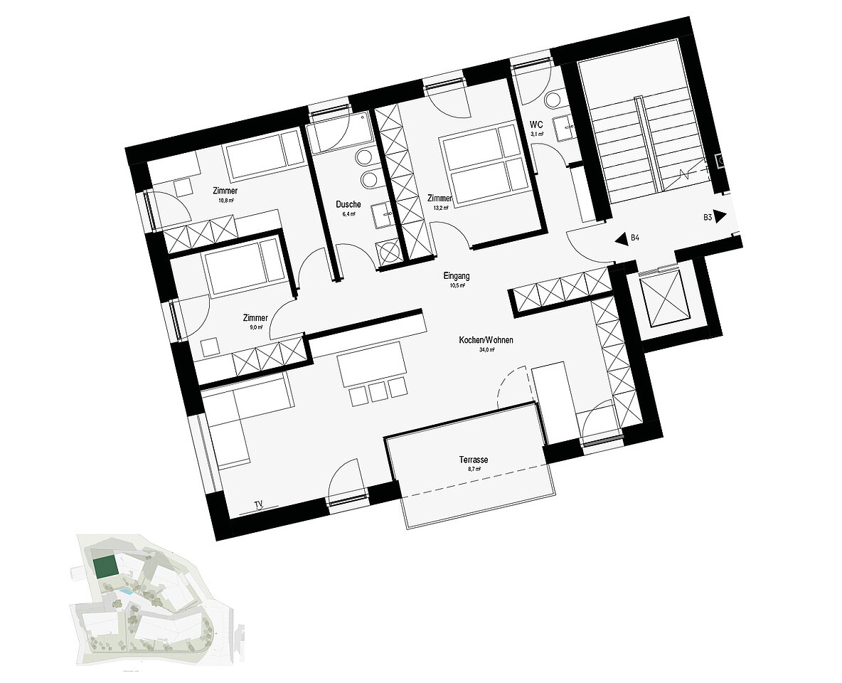Questo spazioso quadrilocale nel progetto di nuova costruzione Gisser a San Sigismondo offre una superficie abitabile netta di circa 87 metri quadrati, che lo rende il posto perfetto per trasformare la vostra casa dei sogni in realtà.