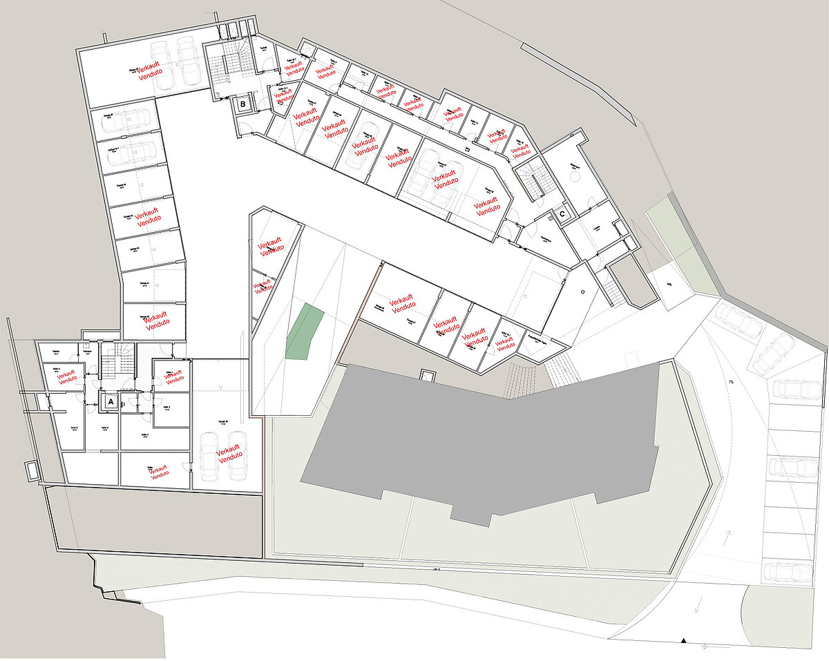 I posti auto in garage nel seminterrato possono essere acquistati separatamente come opzione (garage box: 35.000,00 euro; garage box doppio: 5