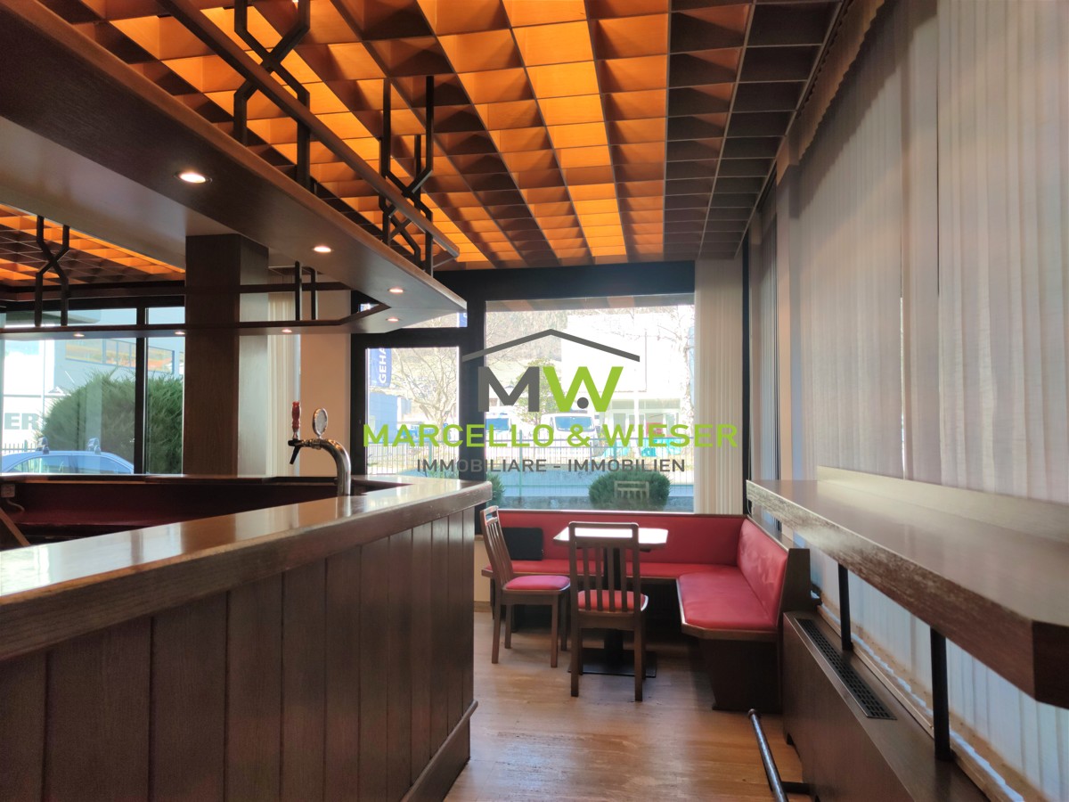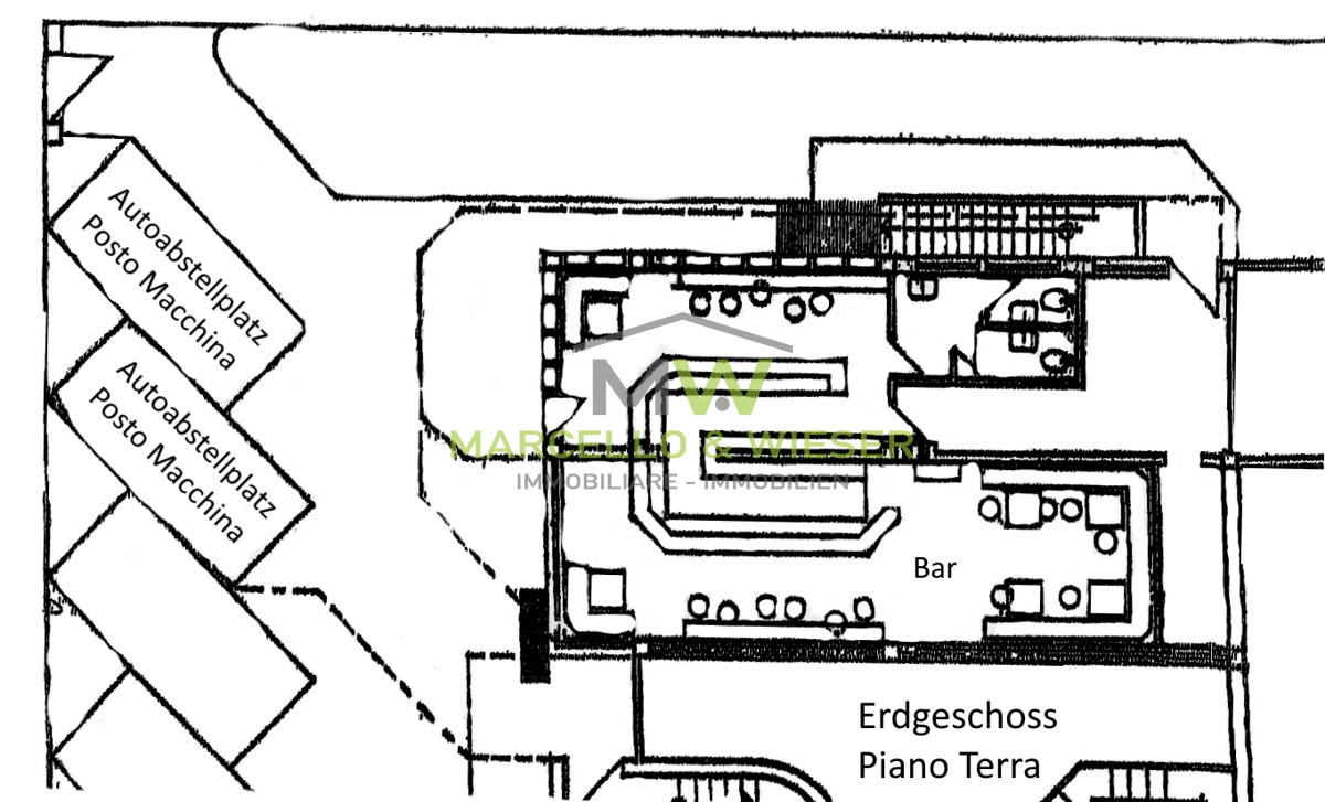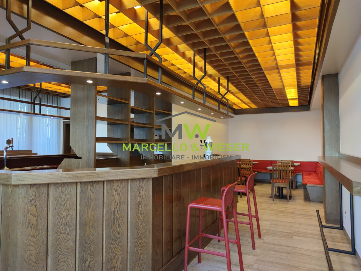 ingresso, bar con grande bancone, 2 WC con anticamera, magazzino, ampia terrazza