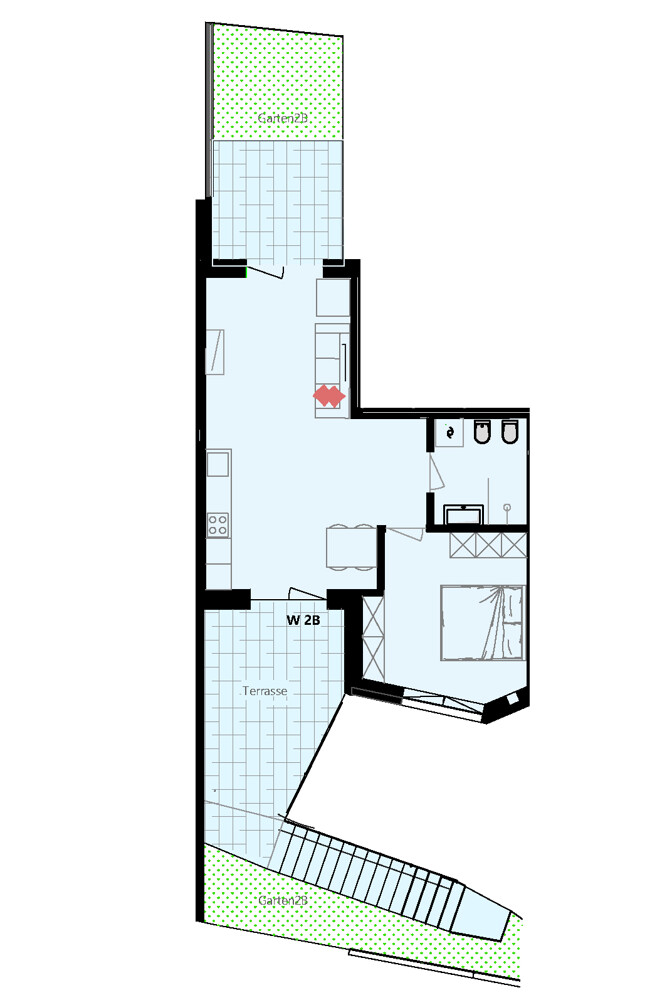 Questo bilocale è stato realizzato in un progetto di nuova costruzione secondo le norme Klimahaus A su un piccolo altopiano della Valle dell'Adige a Corona/Cortaccia. L'edificio è suddiviso in un totale di sole 5 unità abitative e, grazie alla sua disposizione, ogni appartamento offre la massima privacy possibile. Circa 50 m² di superficie netta abitabile sono distribuiti su un unico piano al primo piano: camera da letto, bagno e cucina/soggiorno. Inoltre, l'appartamento dispone di due terrazze e giardini esposti a nord e a sud.